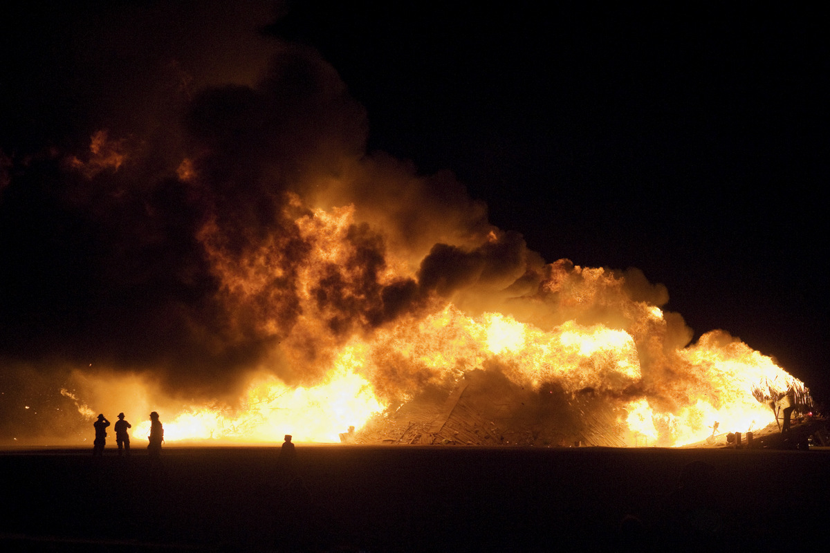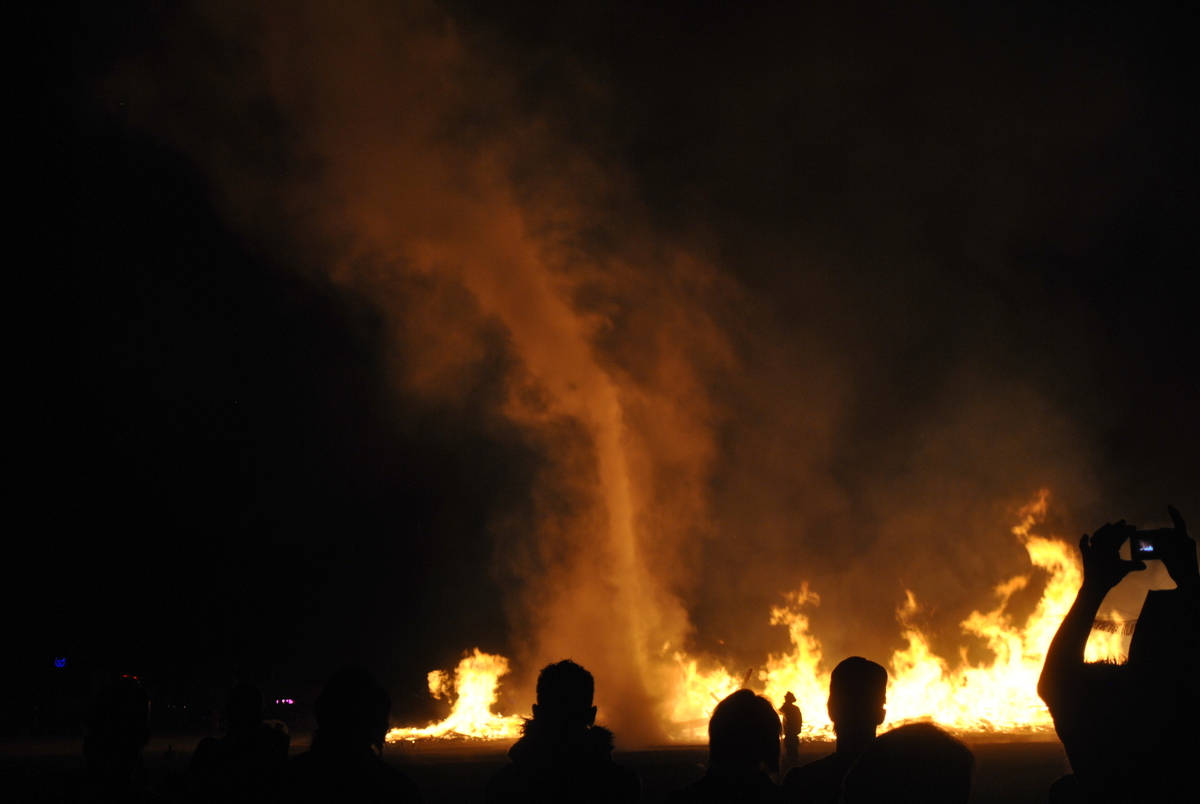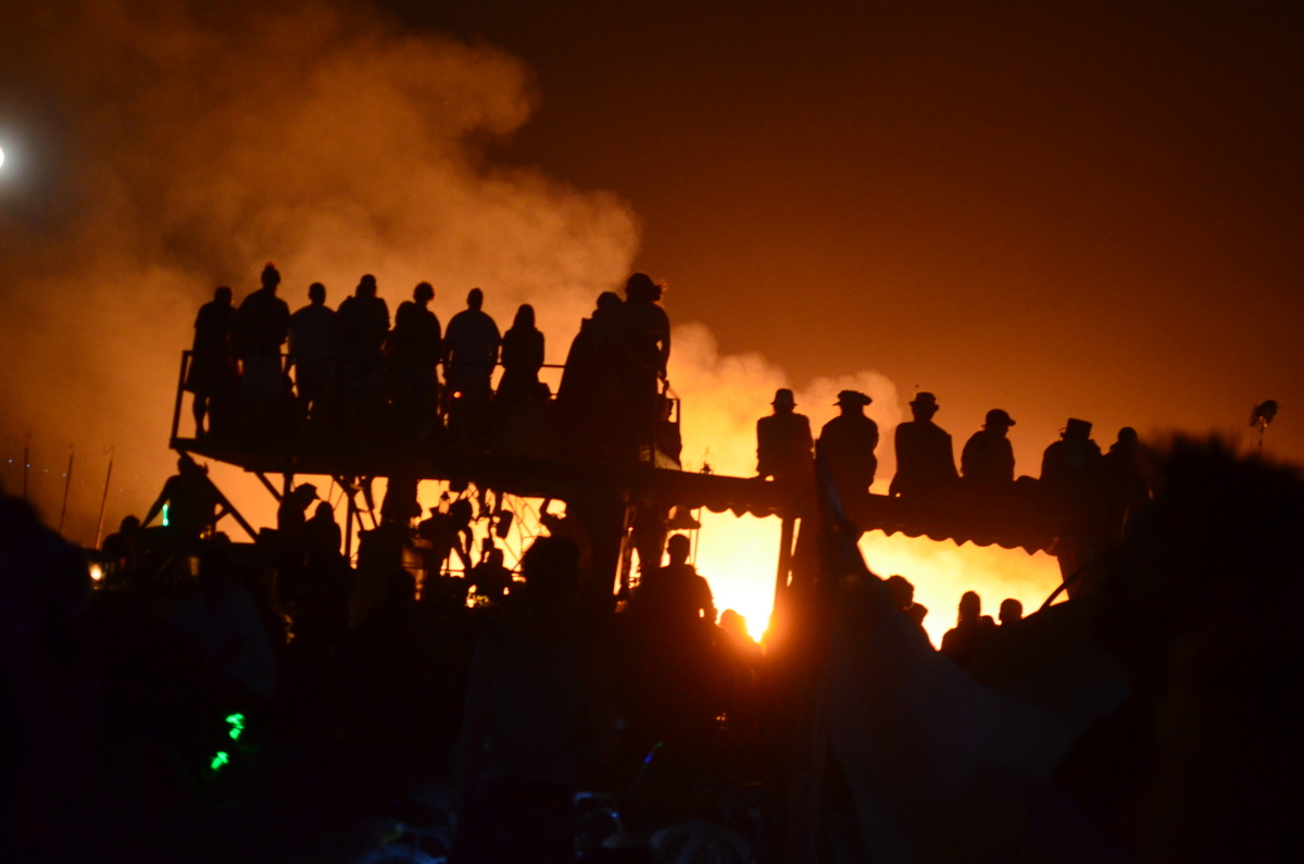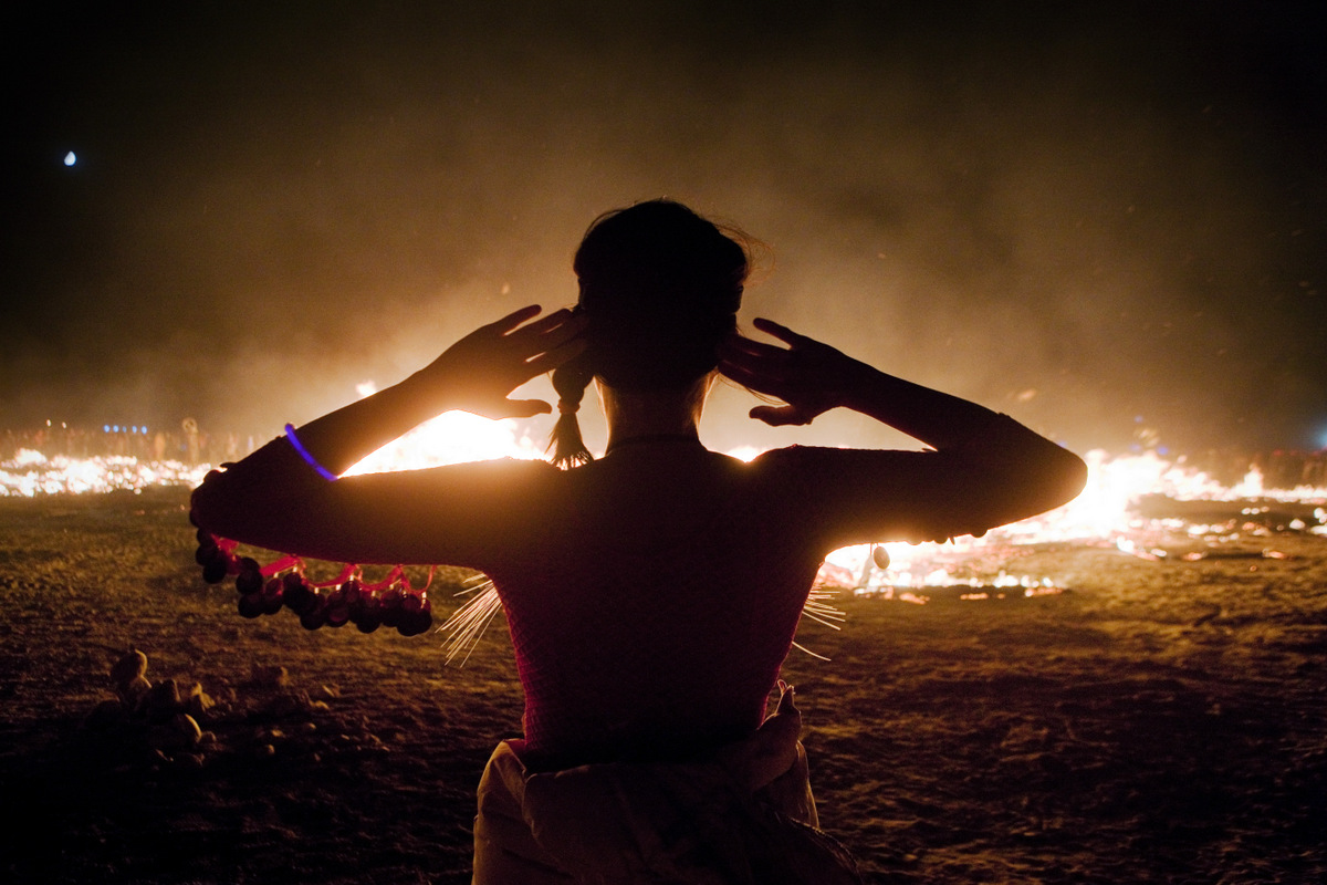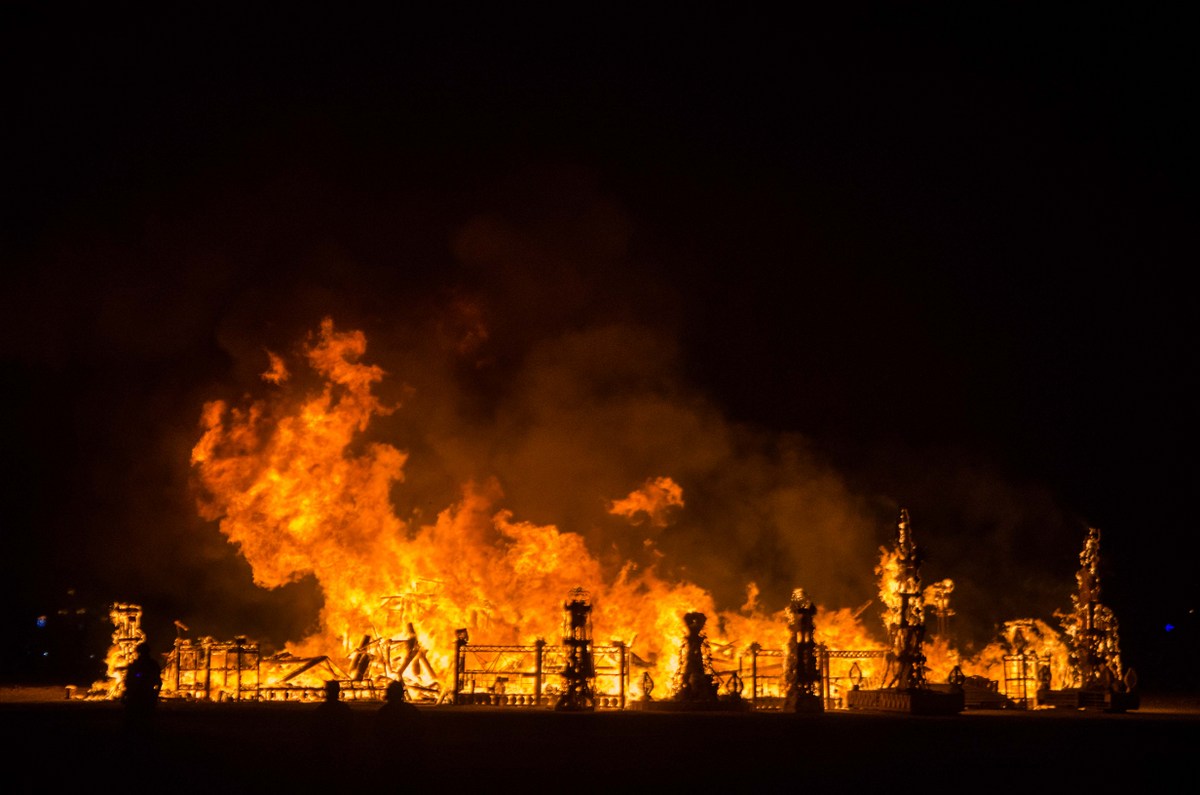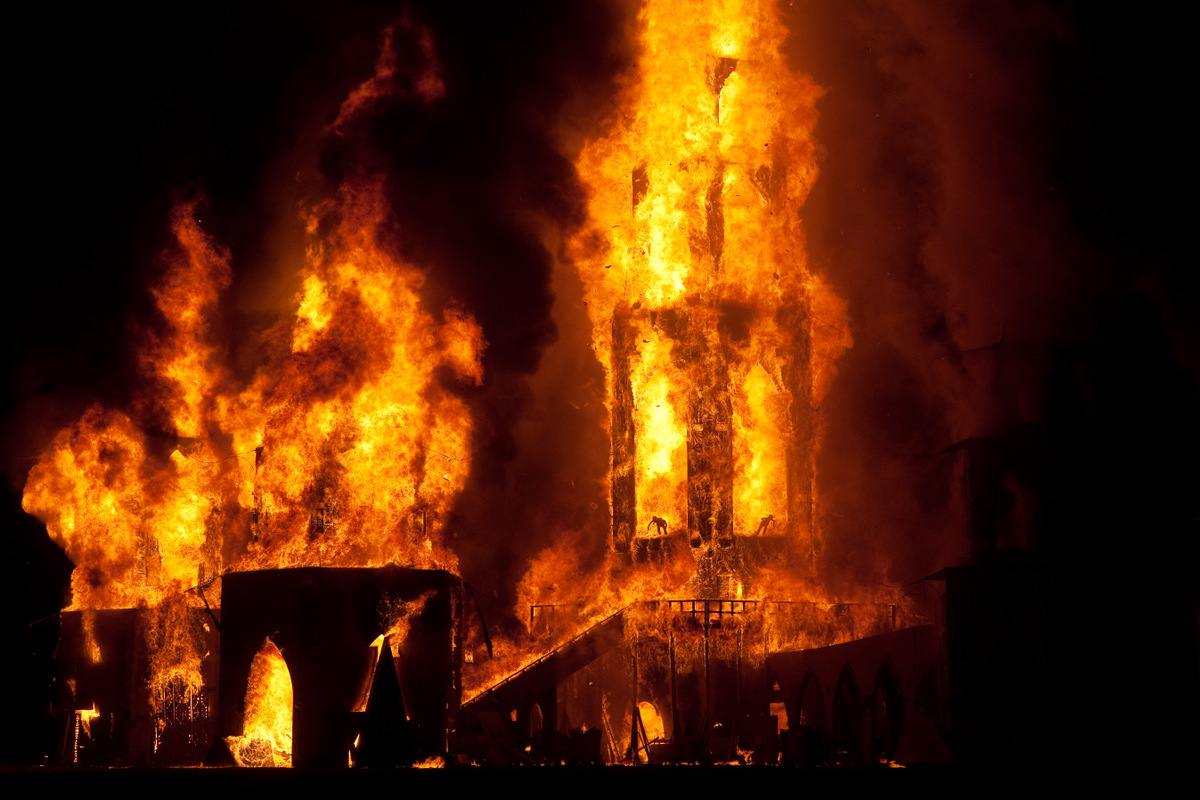 Люди смотрят как догорает Храм, и видят в этом огне конец прекрасного фестиваля.