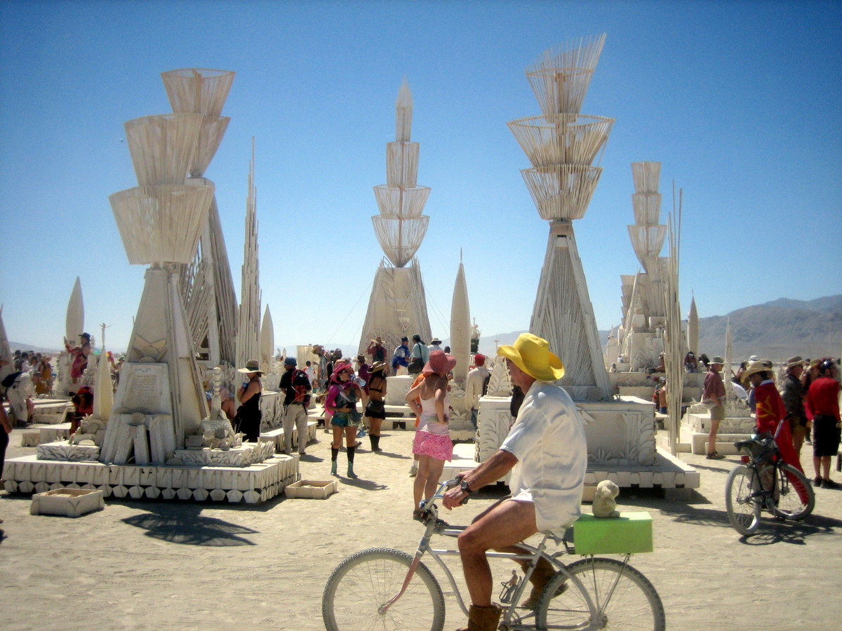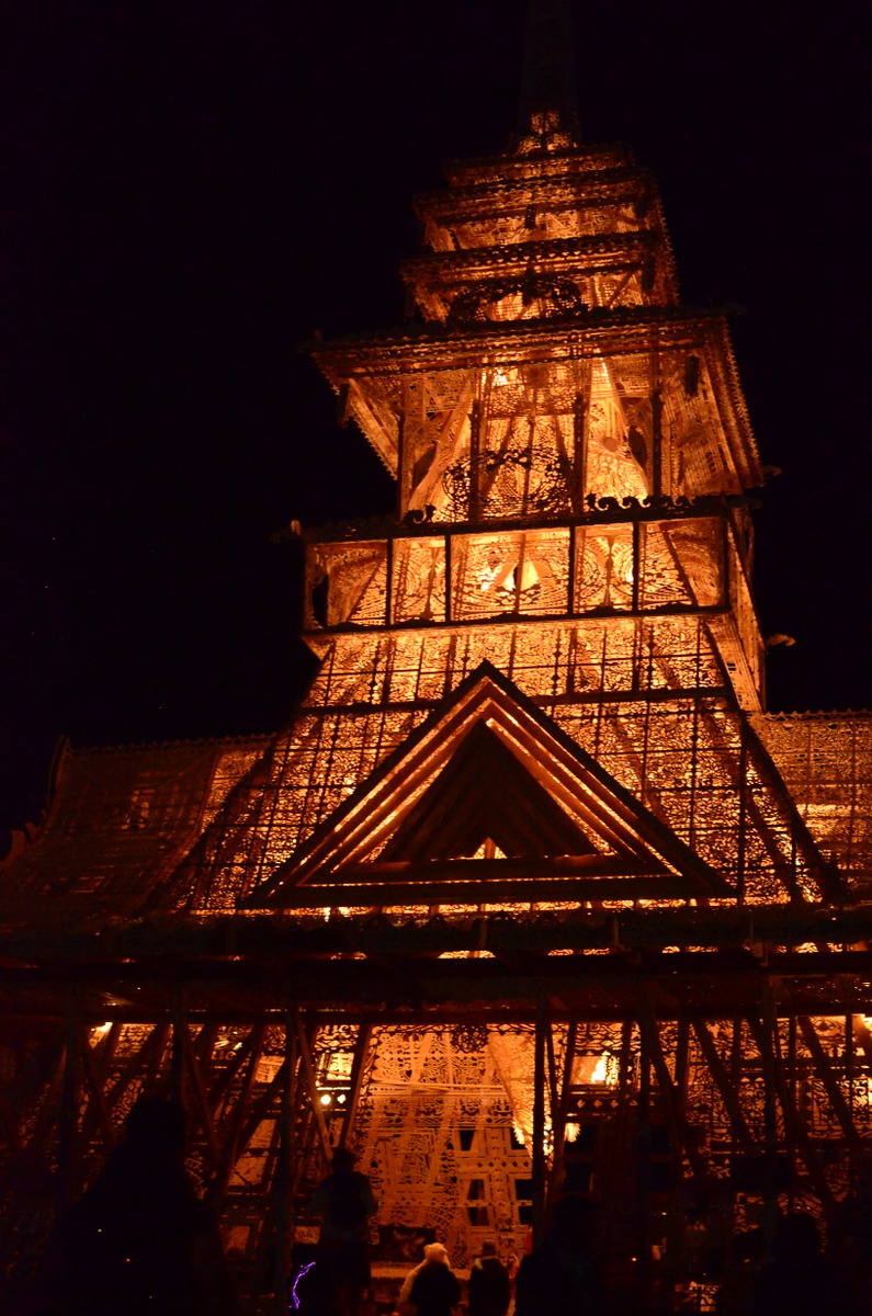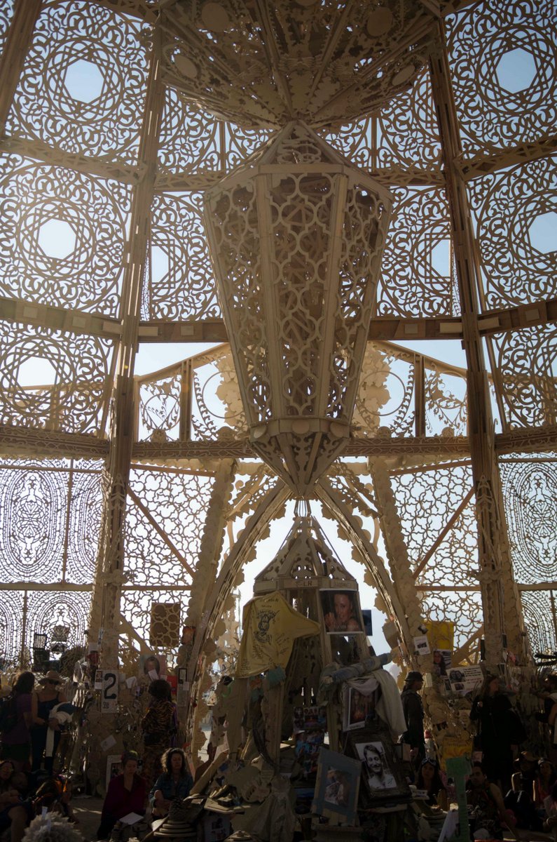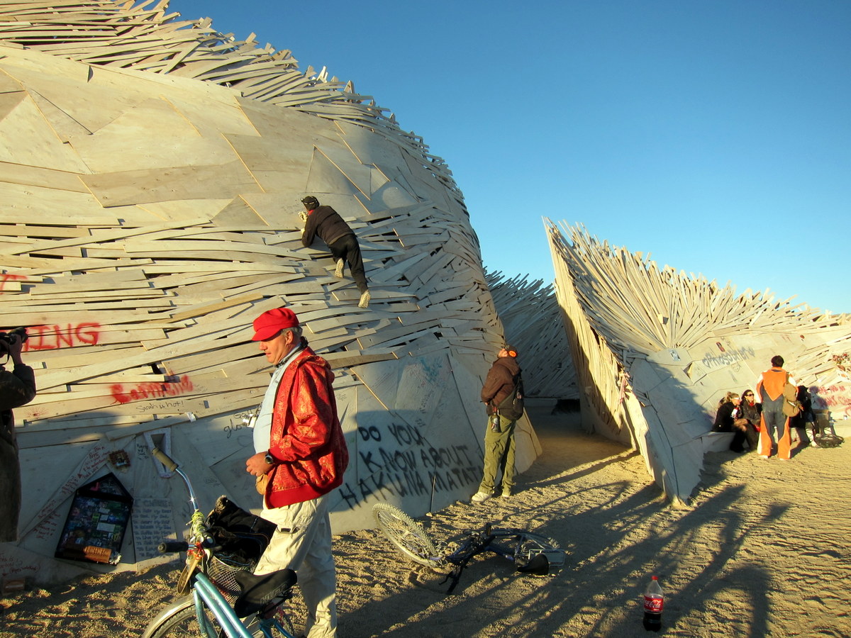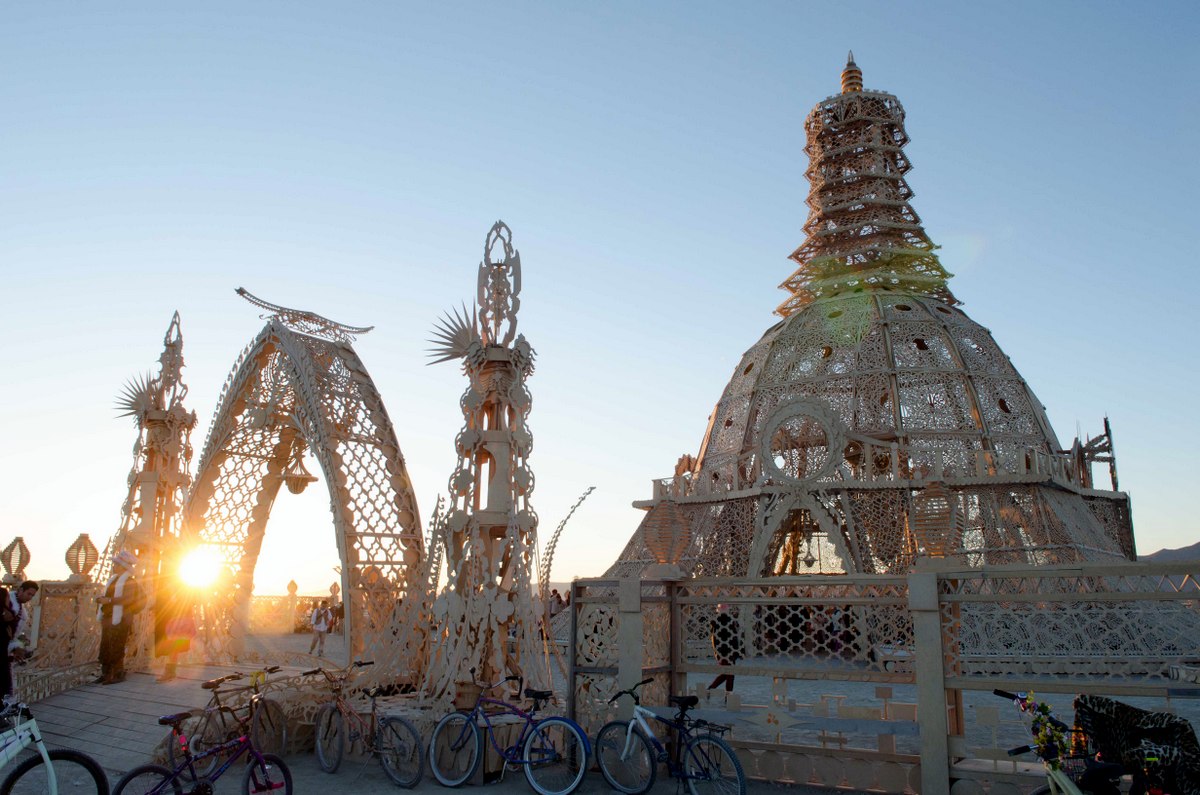 За мои предыдущие девять раз, я оставался чтоб посмотреть на эту церемонию все кроме одного. Пока люди ждут, давайте посмотрим на храмы прошлых лет. Большинство из них кажутся мне невероятно красивыми. То что за несколько месяцев их проектируют и строят тут в пустыне, лишь с тем, чтоб сжечь через неделю после завершения кажется очень странным. Но в этом суть Бёрнинг Мэна.