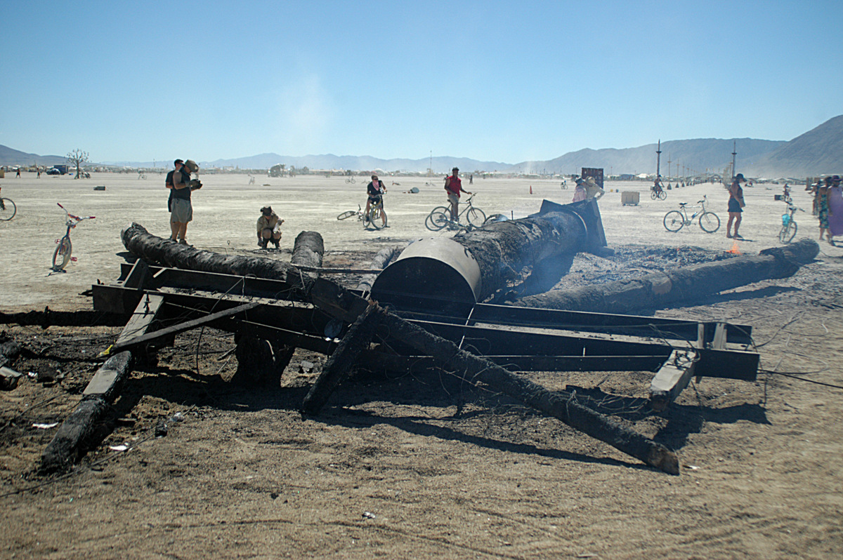 К воскресенью Храм остался одним из немногих ориентиров. Большое количество видных издали инсталляций уже сожжены, самого Мэна придали огню накануне. На его месте теперь дымится жалкая кучка углей.