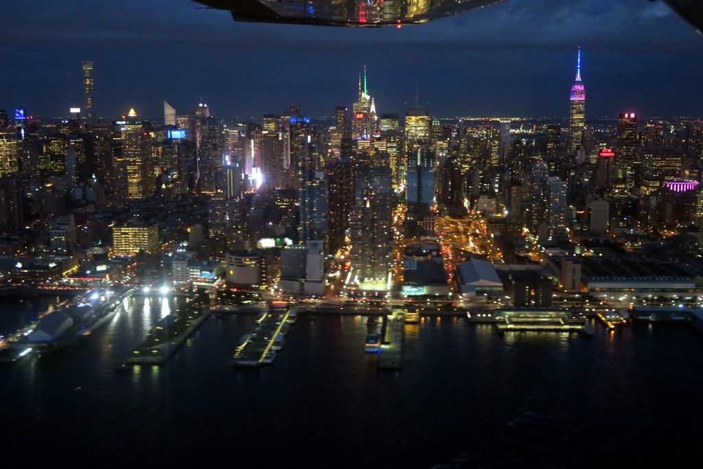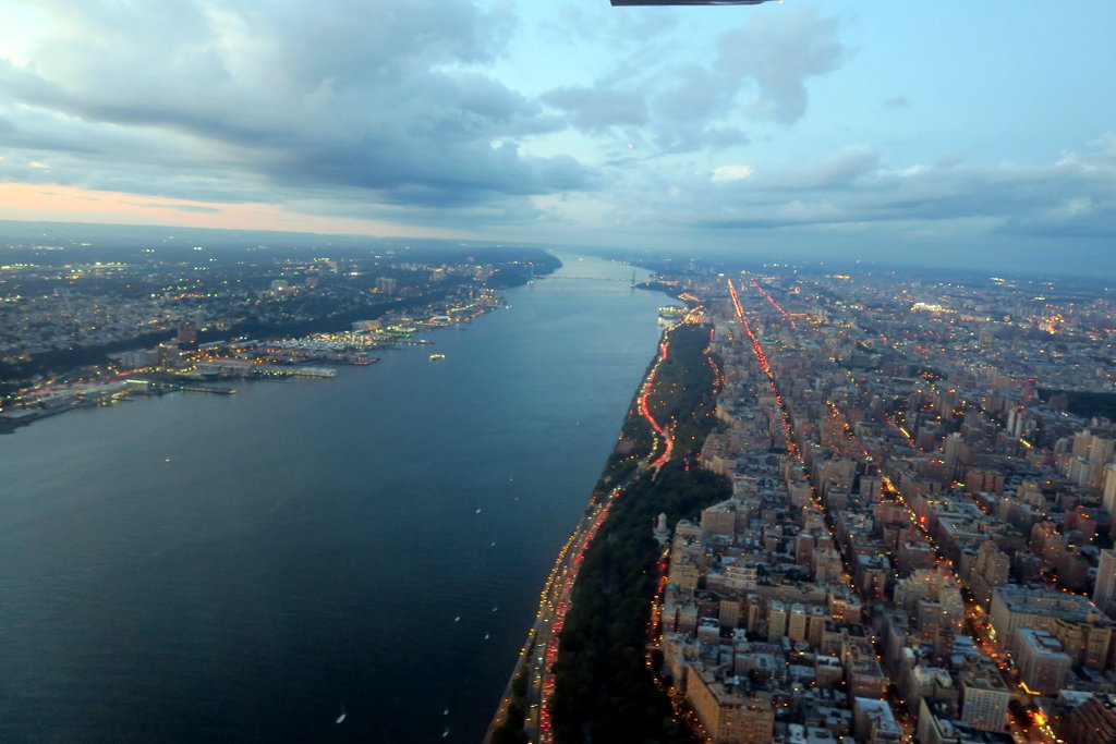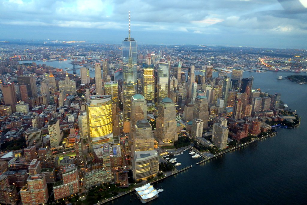 Взлетели мы как раз на закате, так что вскоре на небоскрёбах Манхэттена начали зажигаться огни. Мы облетели новую башню Всемирного Торгового Центра, с её смотровой площадкой.