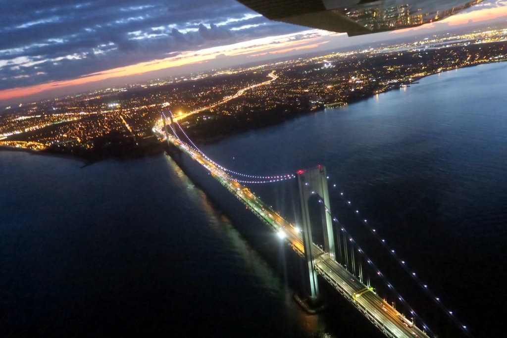 По дороге назад мы пролетели над прекрасным мостом Верразано-Нарроус, который соединяет Бруклин со Стэтен-Айлендон.