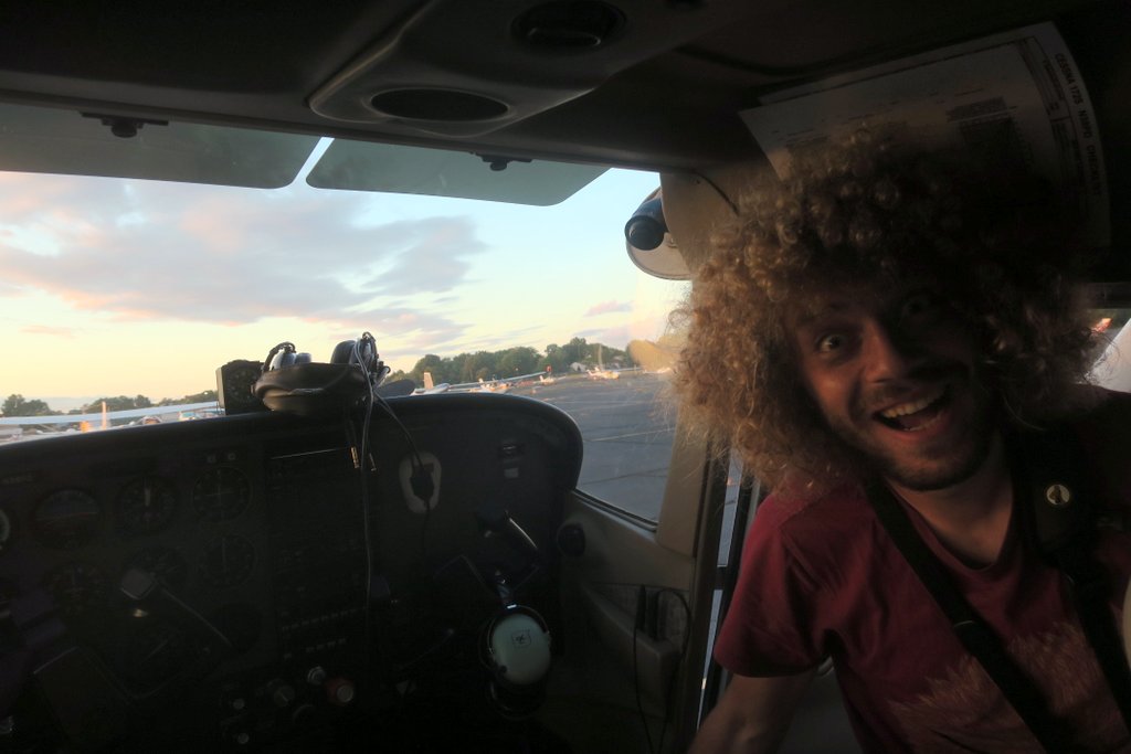 Разумеется на самом деле самолётом управлял не он, а опытный пилот Сергей, у которого много сотен часов налёта. Сергей возит туристов над Нью Йорком профессионально, и рассказывает про разные объекты внизу - если вам захочется с ним полетать, свяжитесь с ним через его профиль ВКонтакте, или специальную группу посвящённую полётам над НЙ.