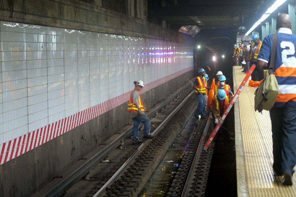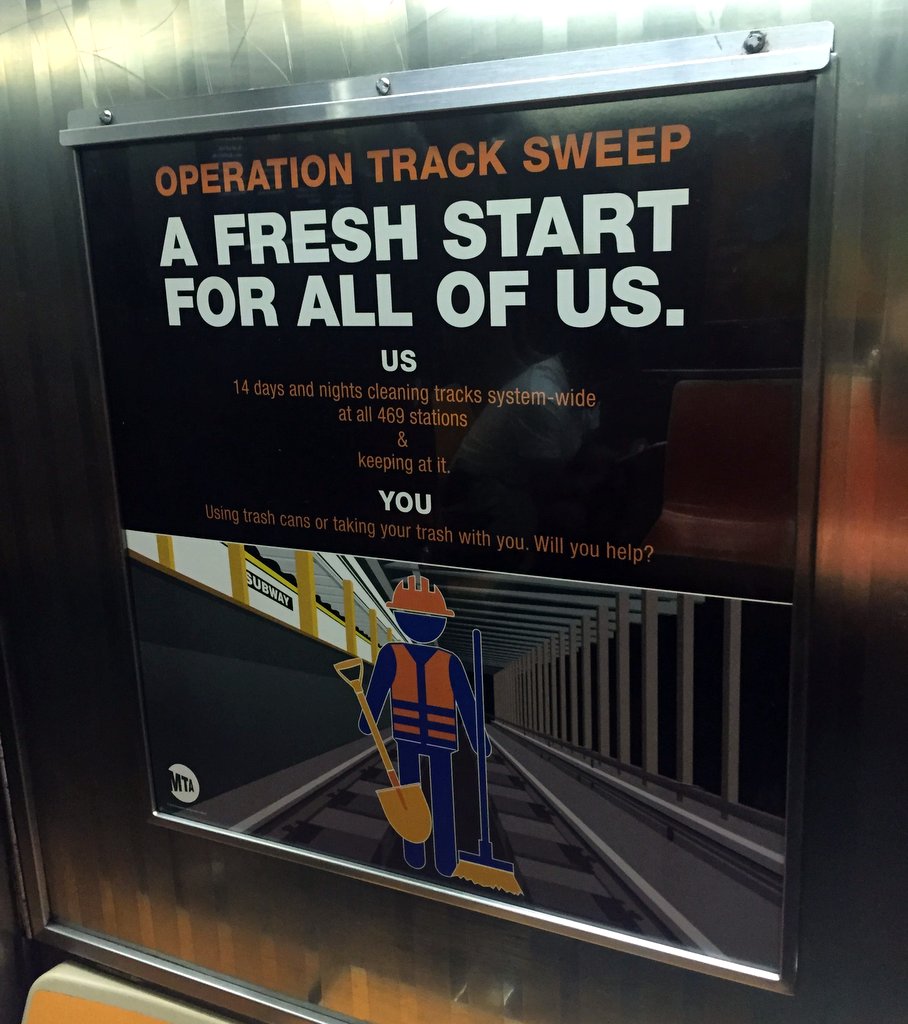 Почему же мне вчера пришлось пост писать так поздно? Да потому, что у нас в метро сейчас генеральная уборка. MTA объявило, что все 469 станций будут полностью очищены от мусора на путях в течении 14 дней. Вот это темп! Выходит, что им по 33 станции в день надо чистить!