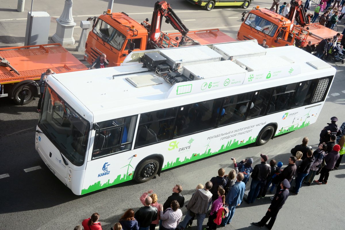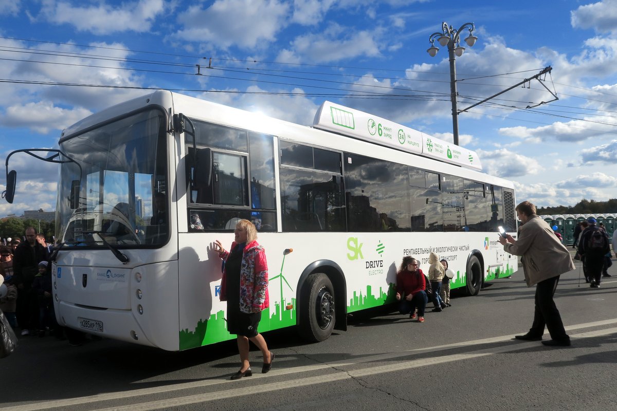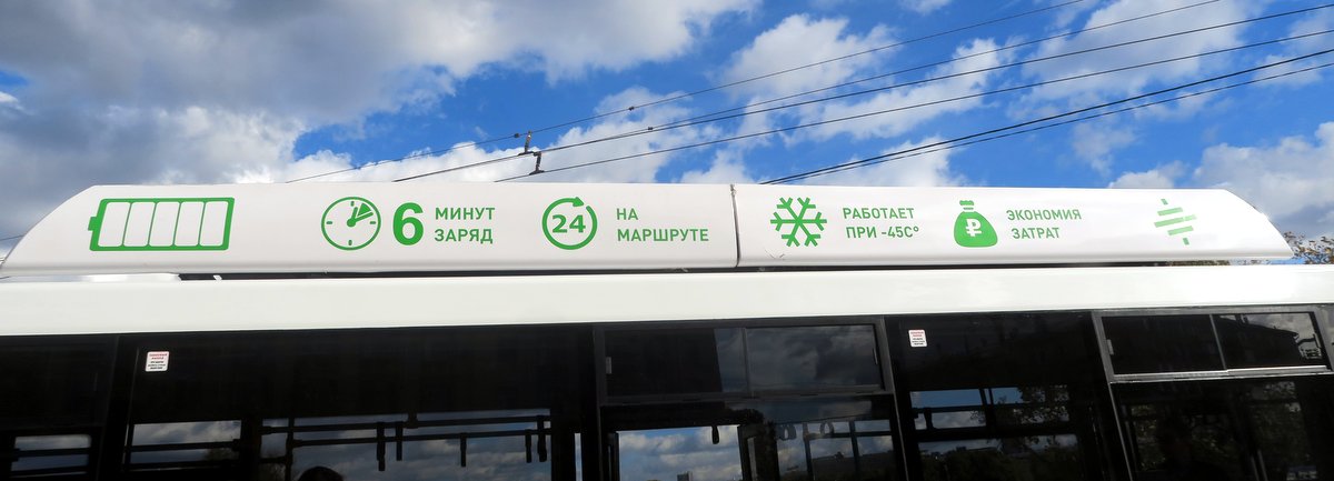 Рекламные надписи обещают то, что кажется мне невозможным: 6 минут зарядки батарей обеспечивают круглосуточную работу на маршруте. А ещё эта машина якобы может работать в 45-градусный мороз!
