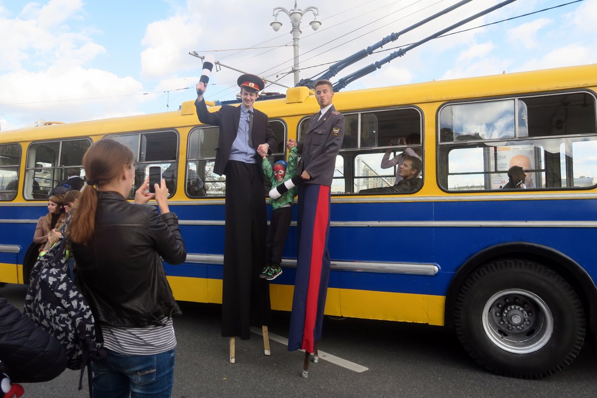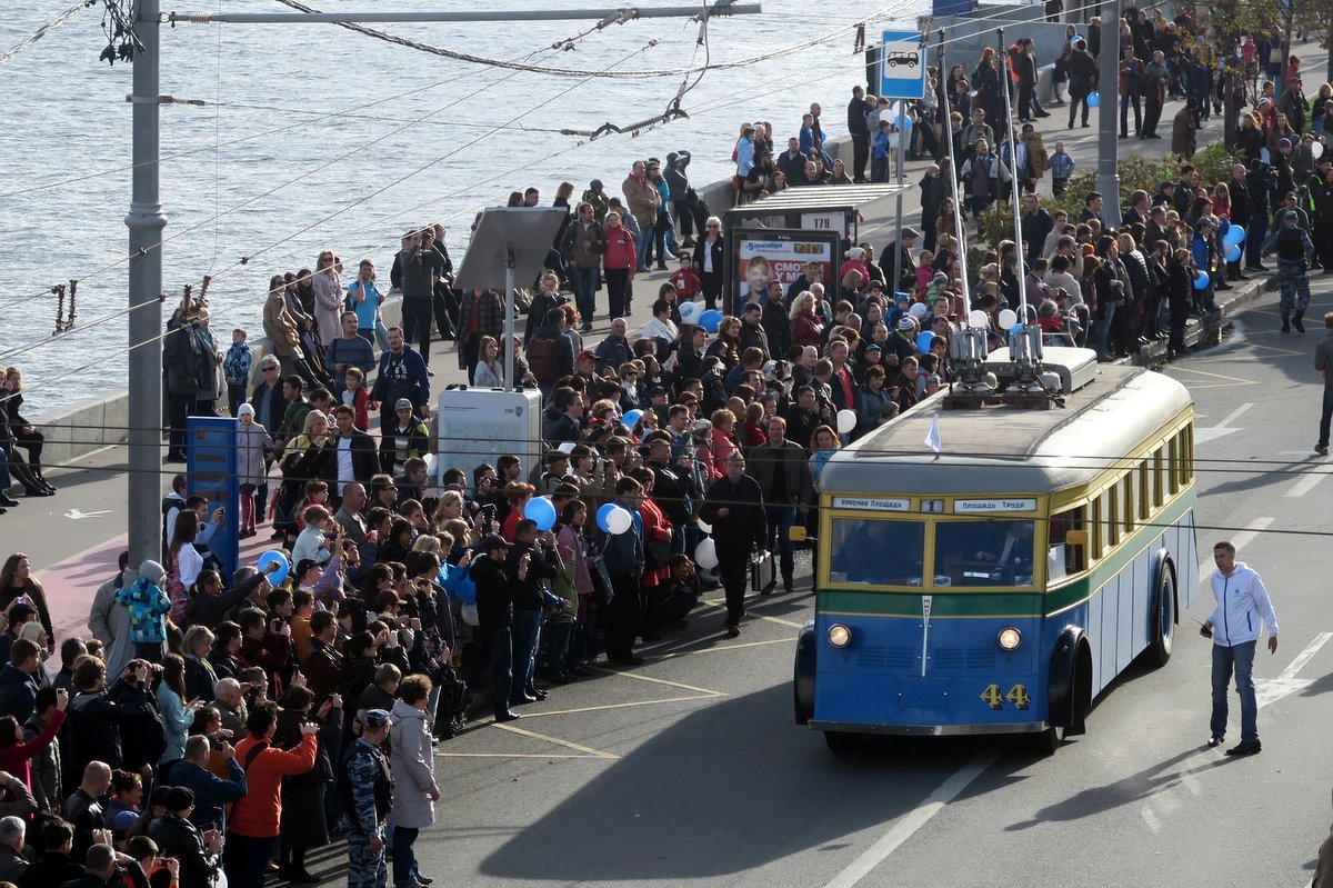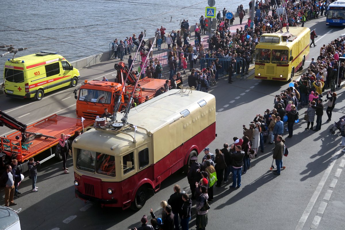 Простояв на набережной несколько часов, троллейбусы подняли штанги, и своим ходом поехали назад в депо. Это было прекрасное зрелище! В этот момент я очень завидовал Москве, потому что у неё есть лучшая в мире сеть троллейбусов. Такой парад по моему гораздо больше подходит для улиц города, чем парад военной техники.