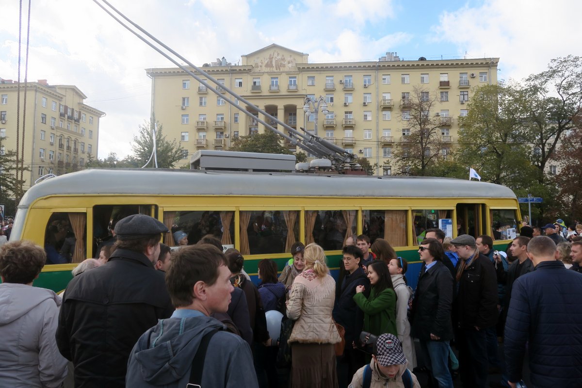 Погода выдалась отличная, и я с радостью пошёл смотреть на крупный рогатый транспорт Москвы. Бывает ведь такое, что случайно окажешься в нужном месте в нужное время. У меня с парадом троллейбусов чистое везение вышло. Приехав в Москву, я спросил тут что делать, и вот annastorm дала наводку на это мероприятие. Я давно о нём слышал, и мечтал попасть, но разумеется не надеялся. Старый общественный транспорт обладает каким-то особым шармом, стоит только посмотреть на то, как любят туристы линию исторических трамваев в Сан Франциско.
