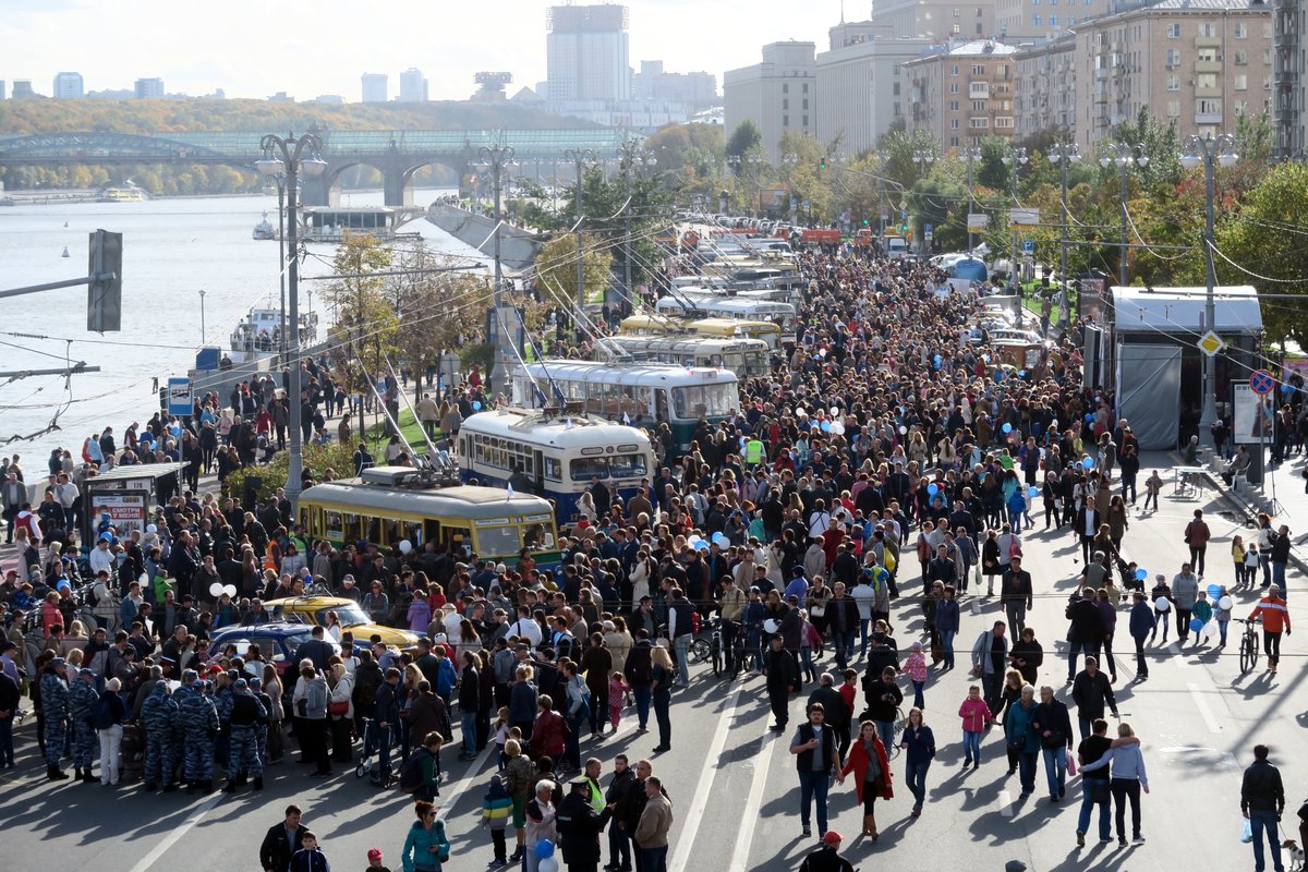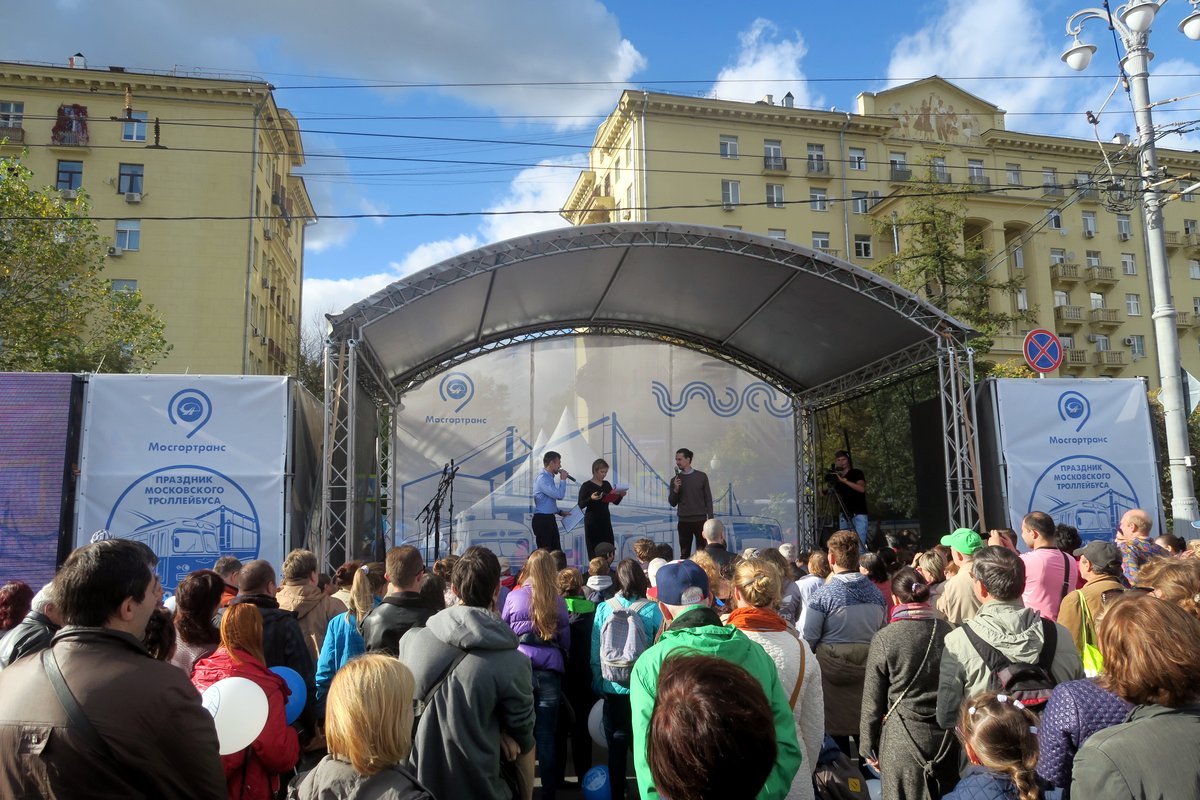 Официальное название события - "Праздник Московского Троллейбуса". Ему сейчас исполнилось 84 года. Куча людей пришли с детьми, что вообще здорово - пусть новое поколение перенимает правильные городские ценности!