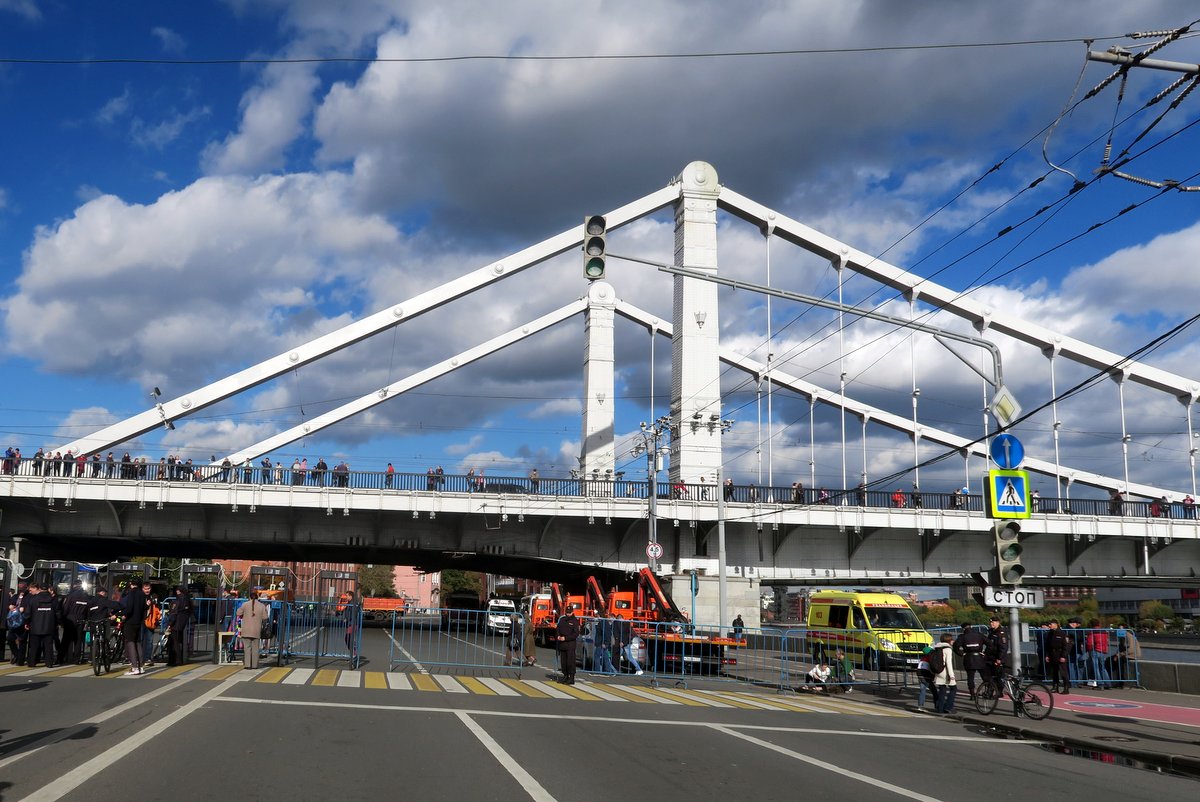 Пришлось лезть на Крымский Мост, и ждать пока от машины отгонят посетителей.