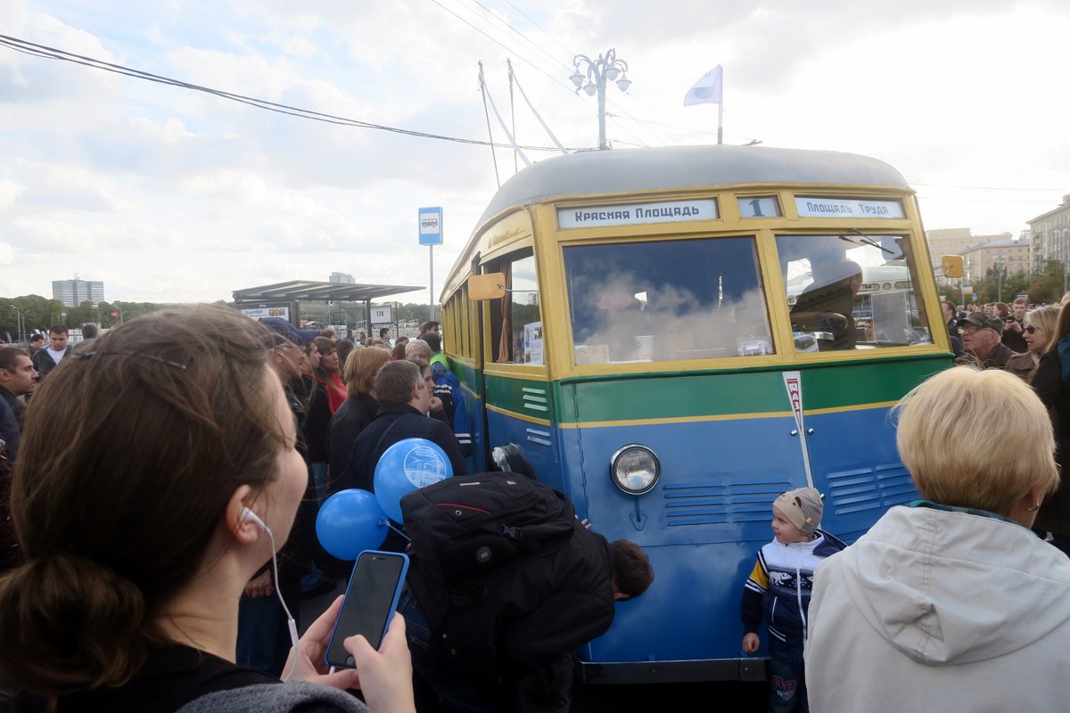 Как оказалось, жители Москвы очень даже интересуются историей транспорта. Народу на Фрунзенской набережной собралось немало.