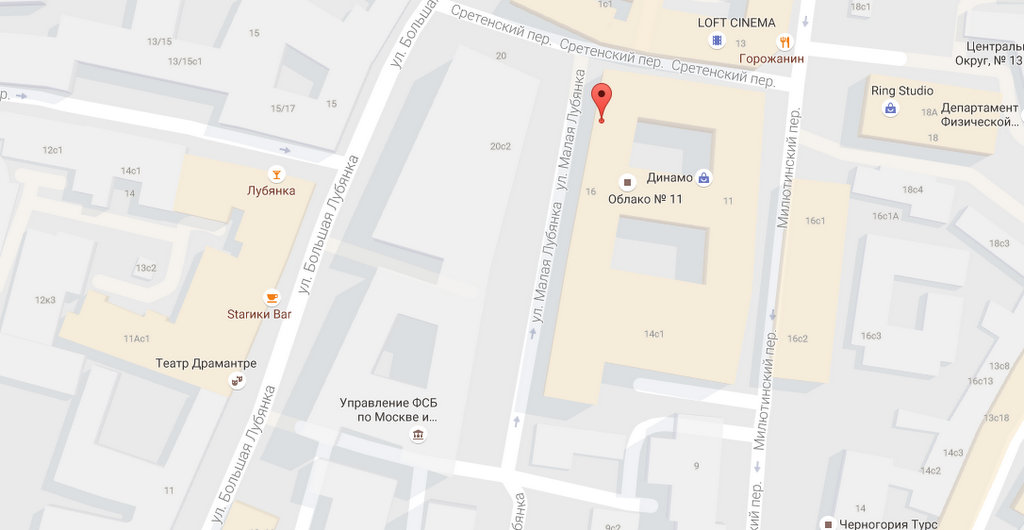 Когда я наконец заселился и посмотрел, что у меня находится по соседству, оказалось, что прямо через дорогу находится "Управления ФСБ по Москве и..." Это зловещее троеточие в конце надписи на карте в особенности не сулило ничего хорошего. Я так и не узнал, "и" по чему ещё было это управление, кроме как по Москве.