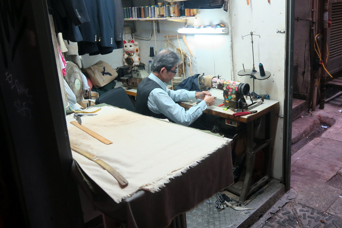1 Уличный портной. Работает в небольшом закутке посреди города.