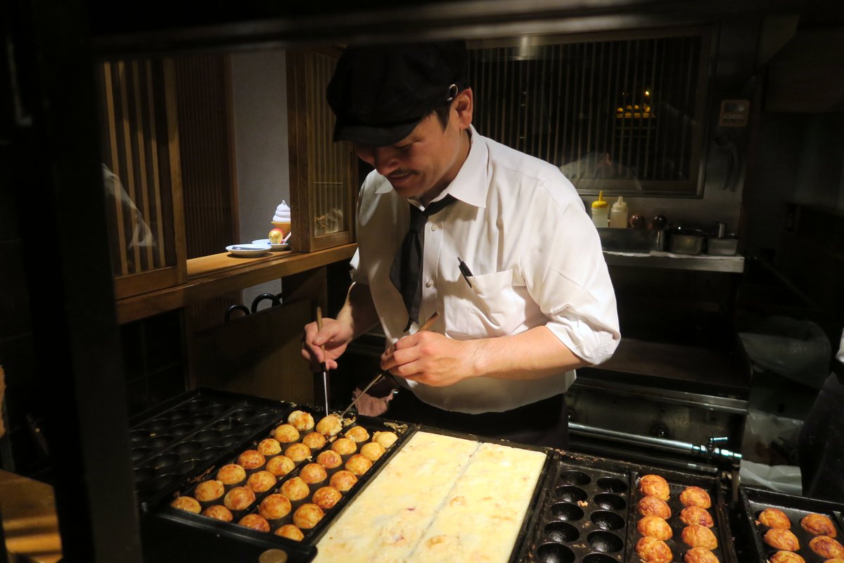 Одно из самых популярных уличных блюд Японии - шарики из жаренного осьминога, такояки. Эти шарики готовятся в специальных формах.