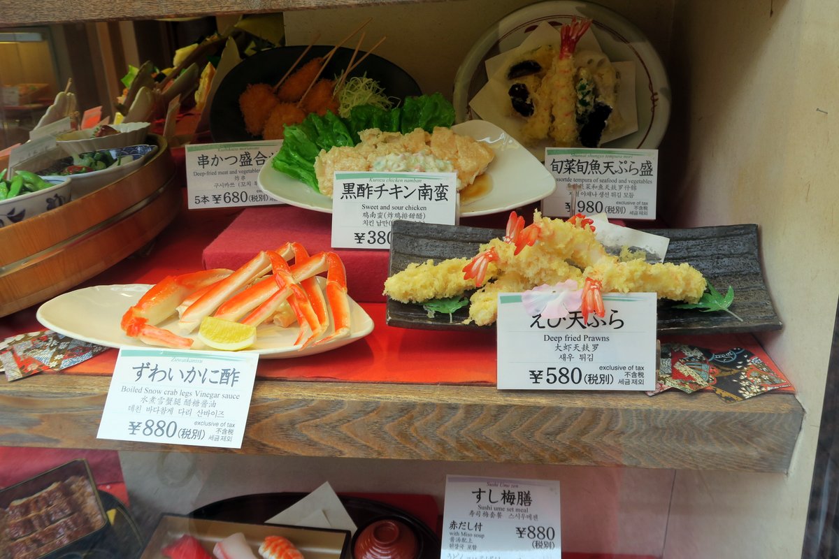 Как же в таких услоивиях можно что-то заказать из еды? Неужели надо брать кота в мешке? К счастью тут на выручку приходит обычай японцев выставлять напоказ пластмассовый макет всего меню.