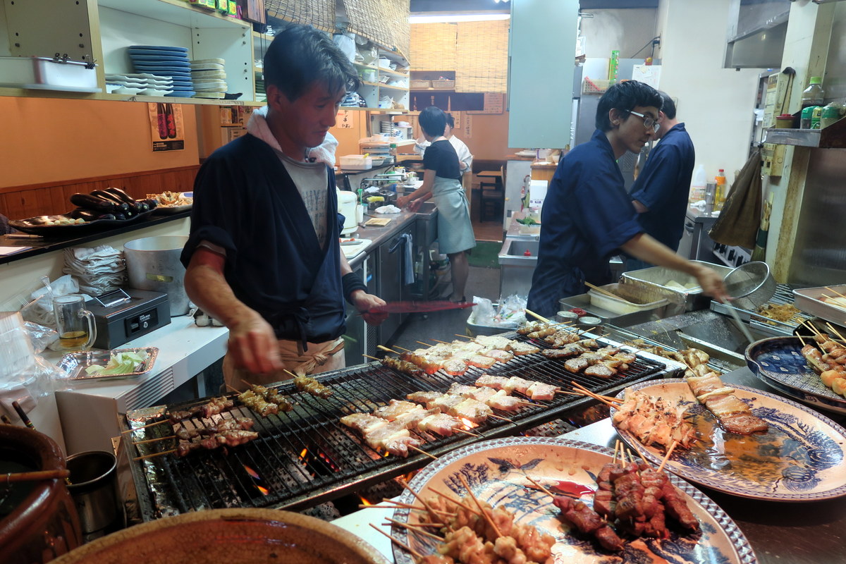 Если хочется мясо попроще, то по всей стране есть заведения "якинику", ("жареное мясо") - в них клиентам предлагают готовить мясо за столиком. А есть такие, где разные кусочки продают готовыми и на палочке. Причём торгуют порой и всякими экзотическими частями. Хотите сердце курицы? А печень коровы? Свинное ушко? Мясо жарят на углях при тебе. Взял и пошёл с ним, или же съел не отходя от кассы. По виду как маленький шахшлык.