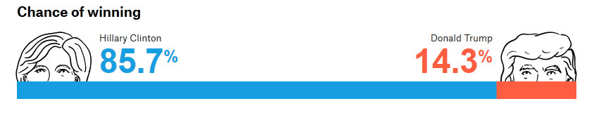 Если три недели назад, шансы кандидатов были почти равны, и Трамп даже лидировал, согласно некоторым из опросов, то сегодня, статисты оценивают его шансы на победу около 14 процентов: