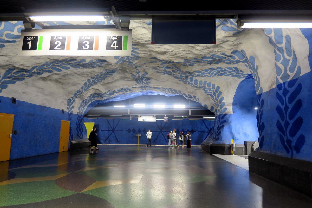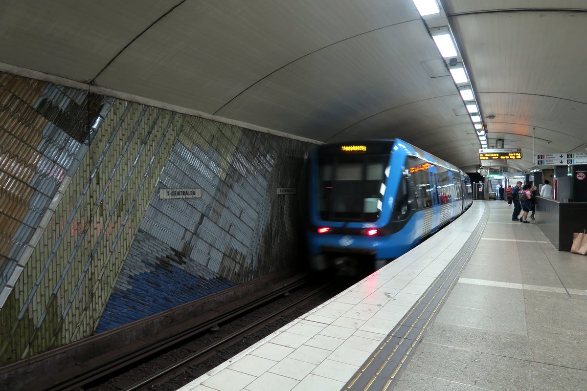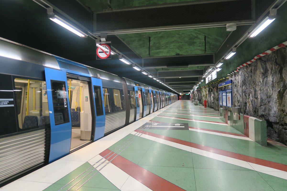 1 Система метро в Стокгольме отркылась в 1950е. Она состоит из линий трёх цветов, пересекающихся в центре города. Правда каждый цвет разветвляется на несколько отдельных маршрутов в пригородах, так что если вам надо ехать не в центр, то следите за конечными направлениями. Все маршруты (их семь) так же продумерованы - в этом плане метро похоже на наше нью-йоркское, где каждый цвет тоже представляет несколько маршрутов.