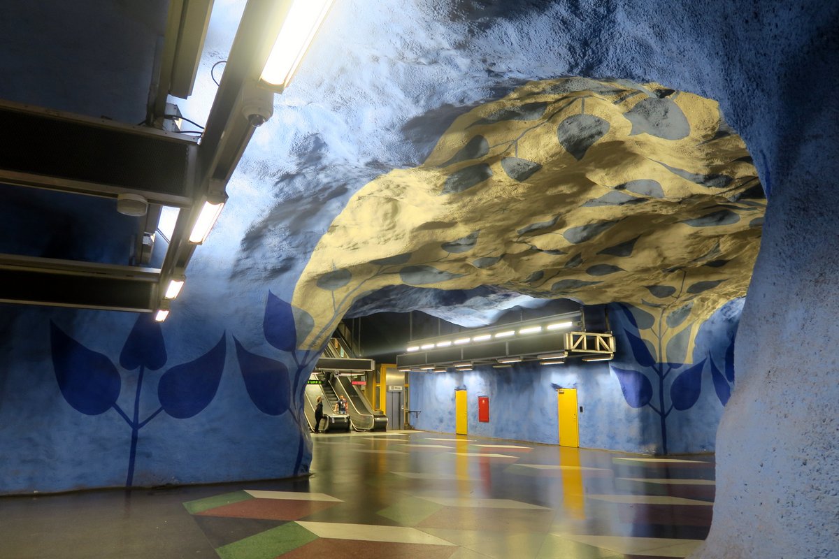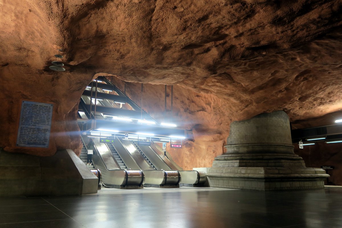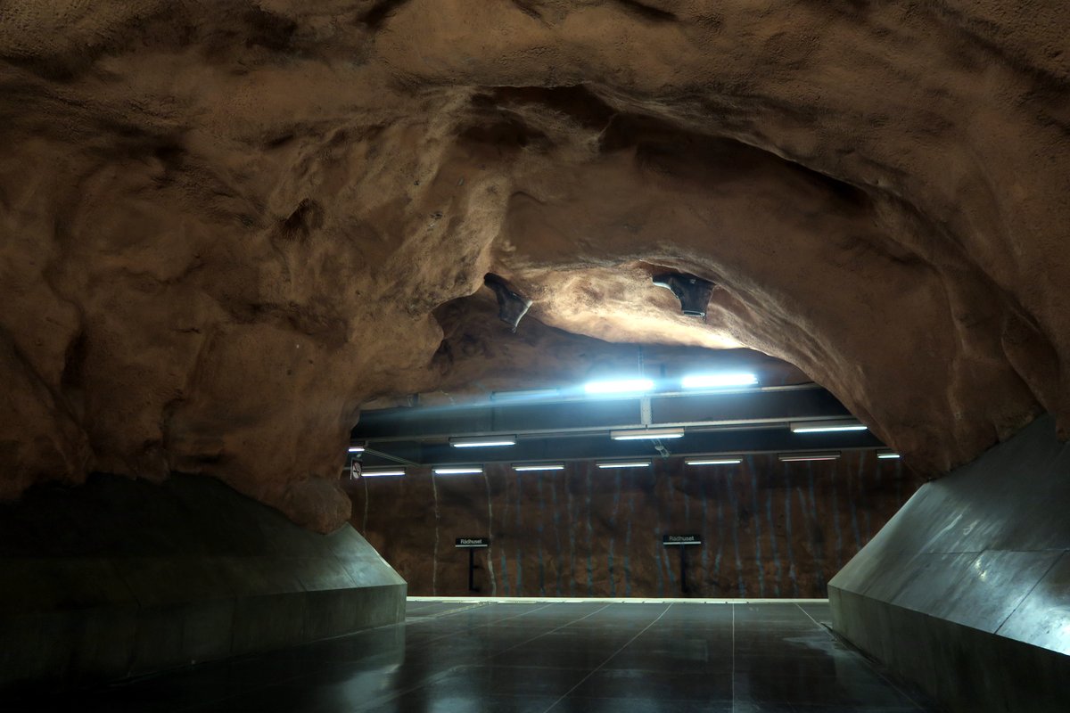 9 Легче всего увидеть такую "пещеру" на центральной остановке, T-Centralen. Главное спуститься на нижний уровень, где ходят поезда синей линии.