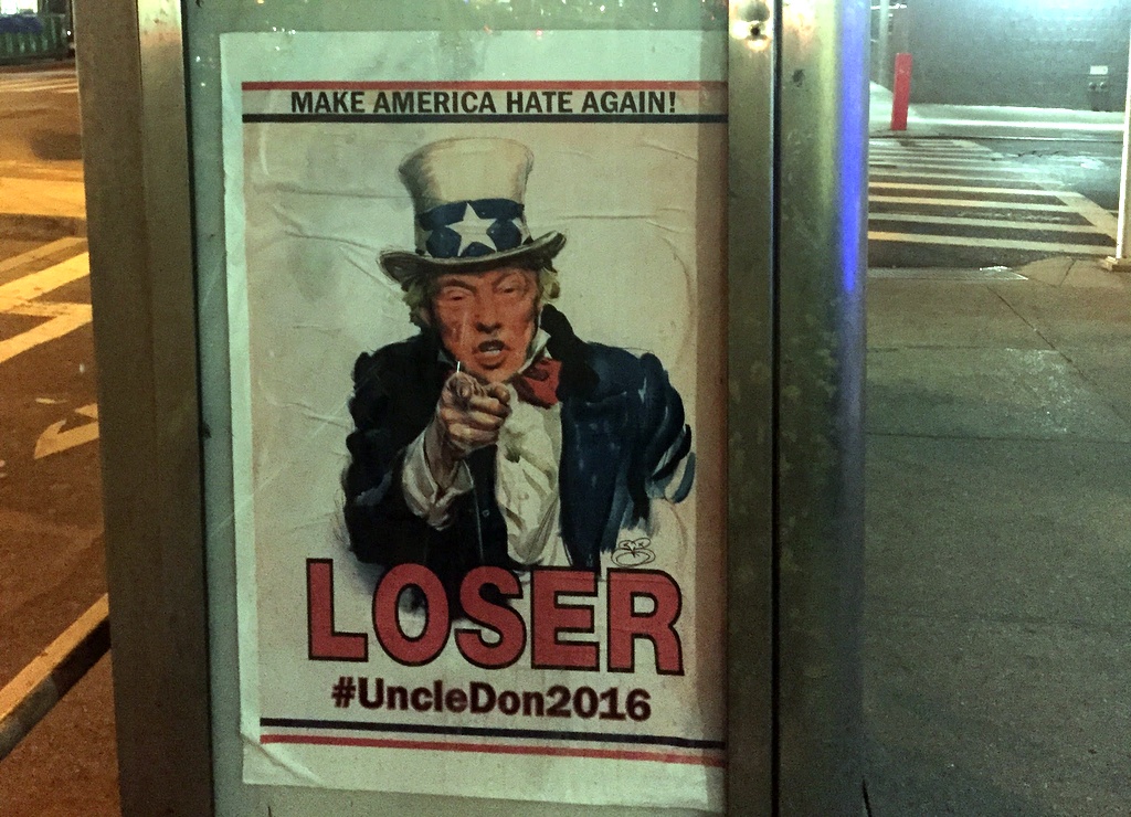 Но люди, которые действительно креативно подходят к вопросу как правило Трампа не поддерживают. Вот такая рекламка висела в телефонной будке рядом с моей работой. Разве можно кандидата в президента называть "Лузером"? Оказывается, что да!