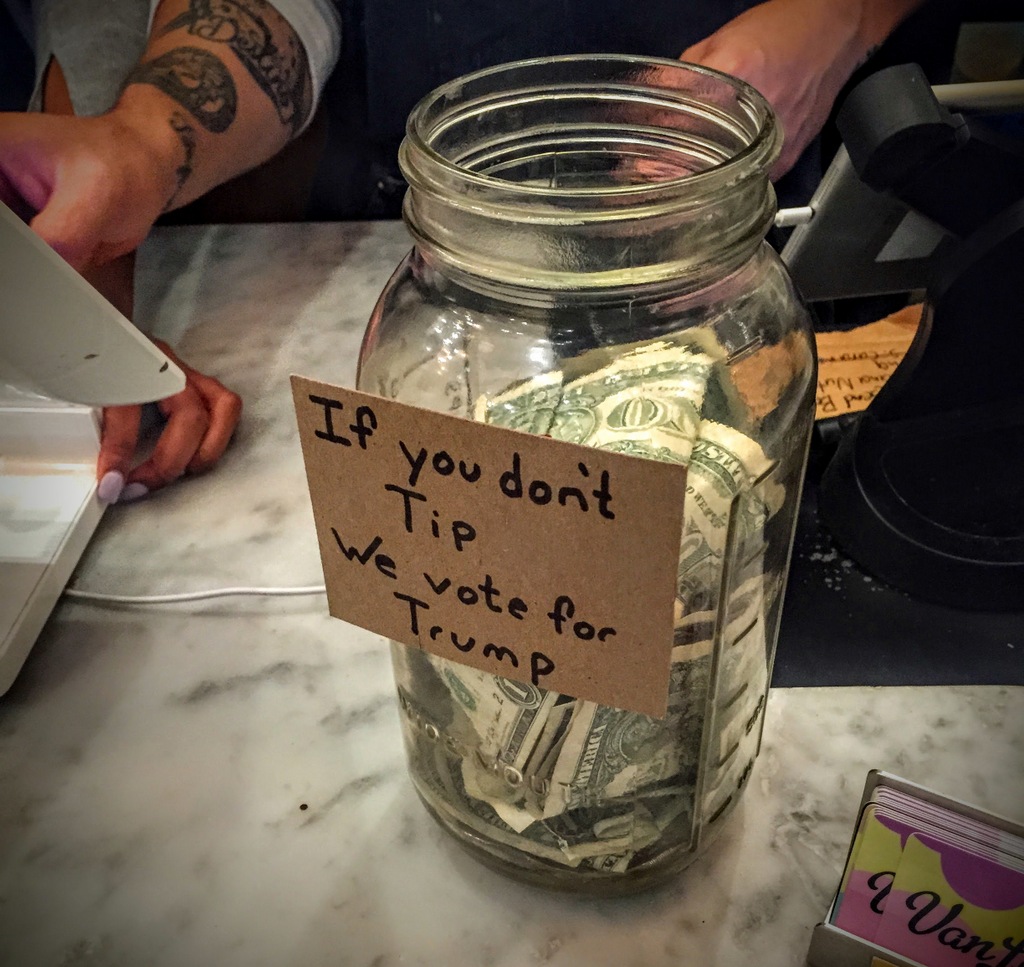 Работники кофе-шопов грозятся: "Оставьте нам чаевых, или мы проголосуем за Трампа!"