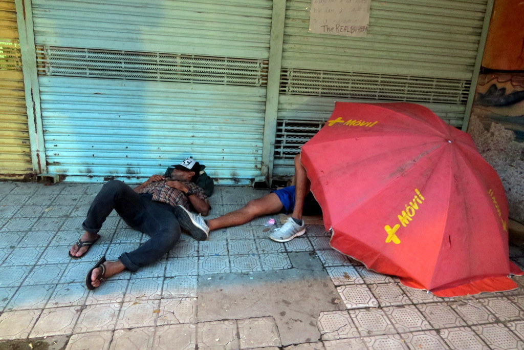 Бездомные спят на улице. Хотя у нас в Америке такого тоже полно.