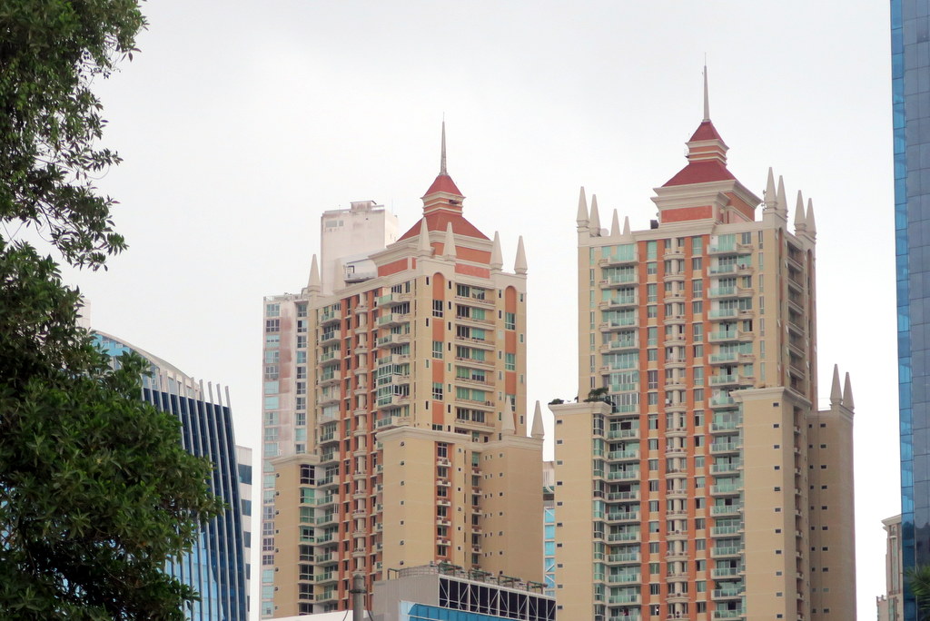 Панамские небоскрёбы - богатство разнообразия. Бывают очень замысловатые. Смотрите, какие башенки!