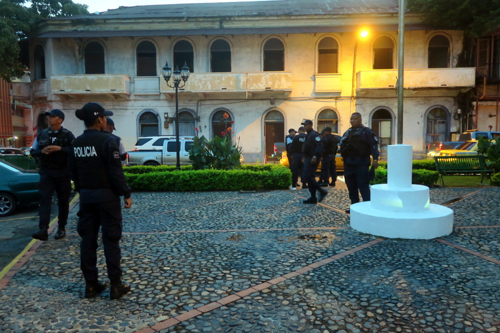 Они всегда носят бронежилеты - панамская полиция ожидает худшего. Правда я за свой визит ни с какими проблемами не столкнулся. Но пару раз мне говорили - "Там небезопасно, вечером лучше не ходи."