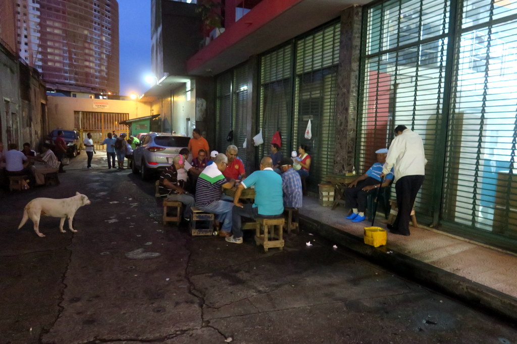 А вот мужики просто играют в домино на улице.