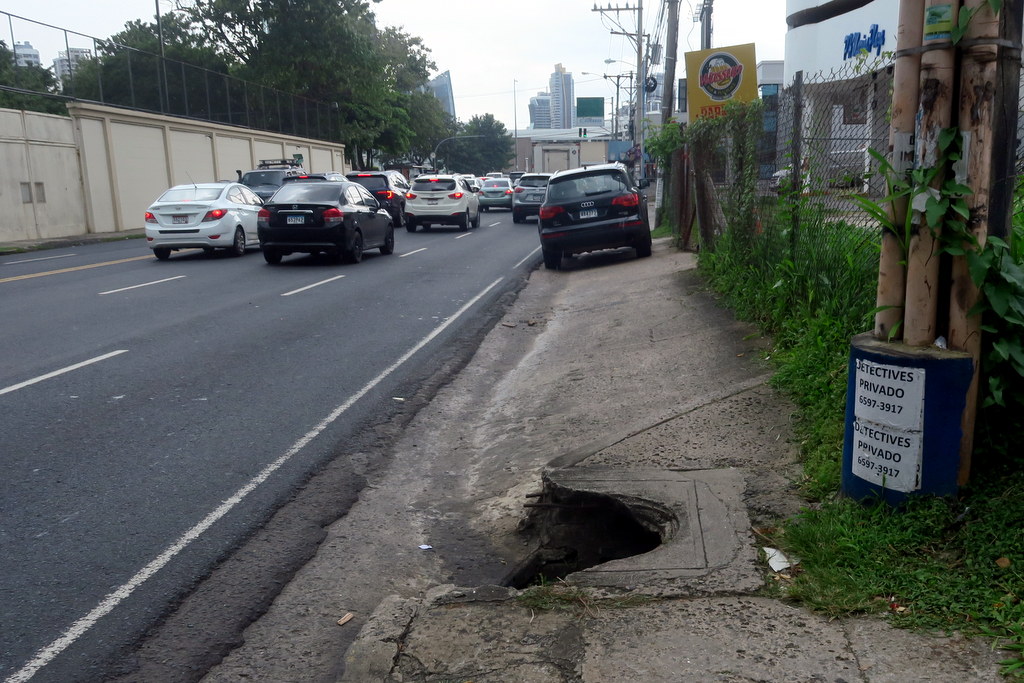 В Панаме беда с тротуарами. Очевидно они никак не регулируются городскими властями, поэтому каждый хозяин устраивает перед своим зданием тротуар на своё усмотрение. Объединяет их лишь то, что все они узкие, неудобные, и полны препятствий.