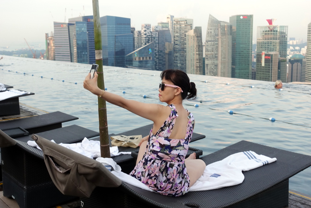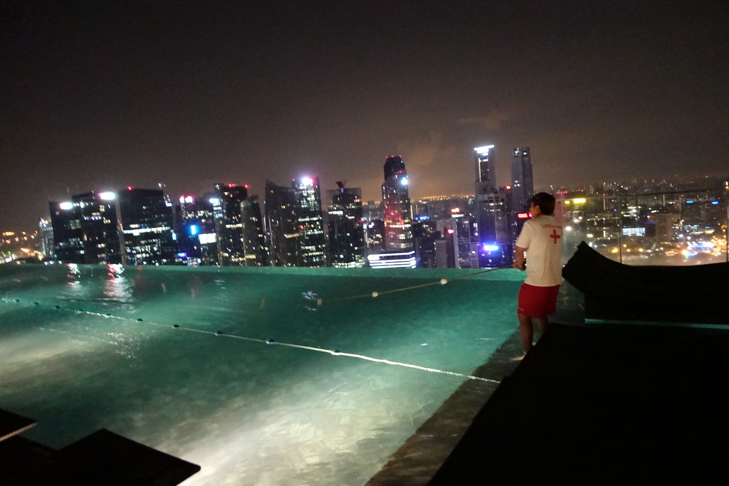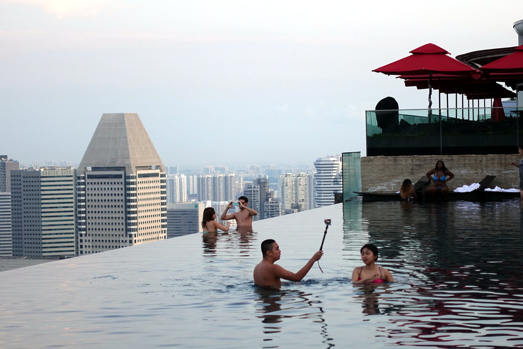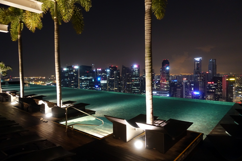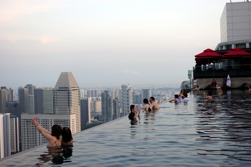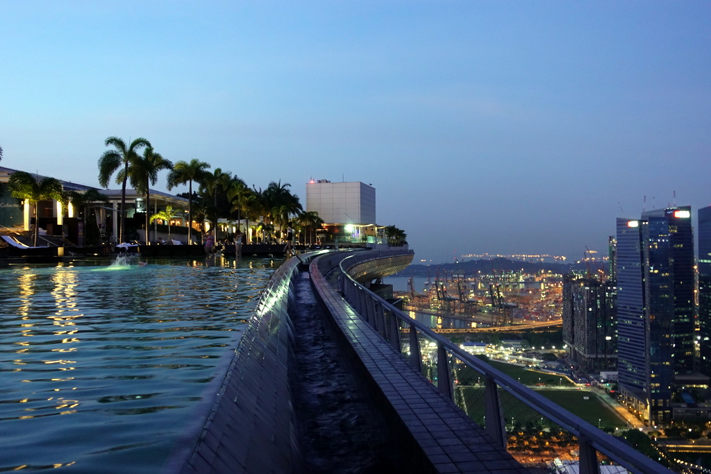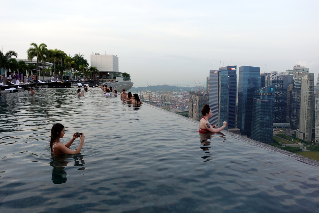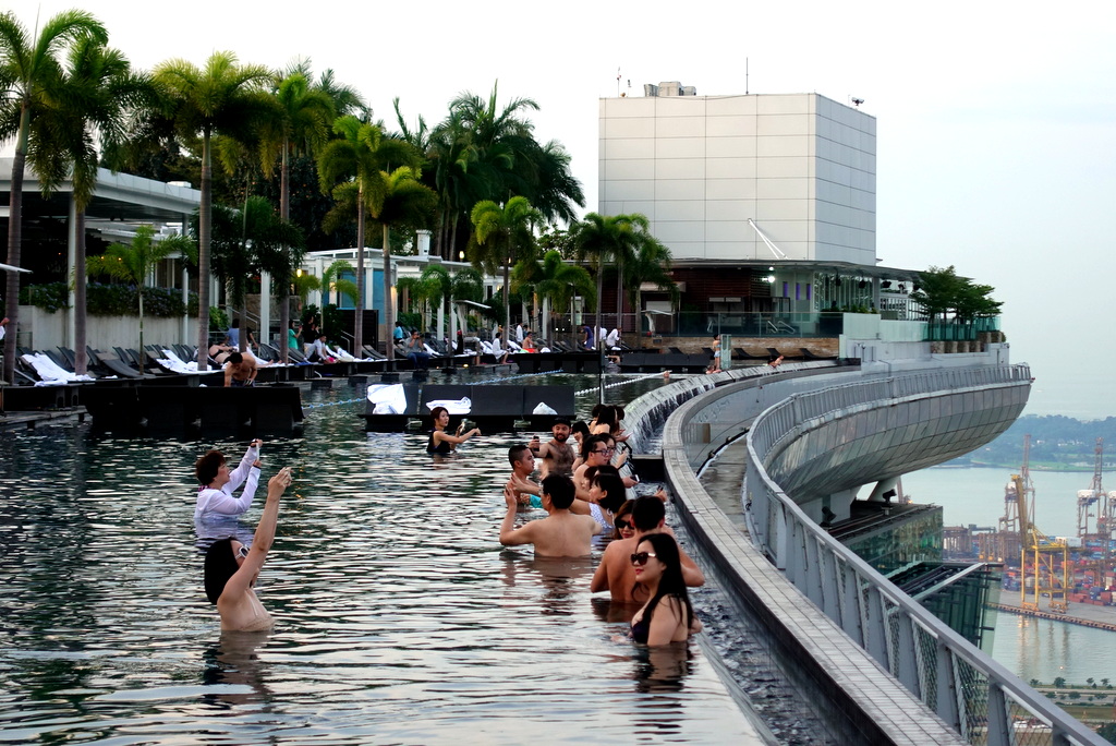 Говорить о чём-то, особенно о бассейне, что он самый известный в мире - история ненужно пафосная. Известность - понятие субъективное. Это ж не башня, которую можно в высоту измерить, и сказать - да, она выше всех. Но уж если выбирать один бассейн на такое звание, то несомненно вот именно он, на крыше комплекса Marina Bay Sands в Сингапуре.