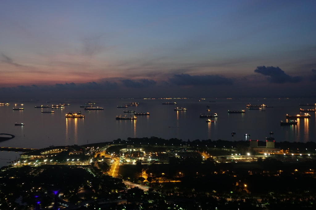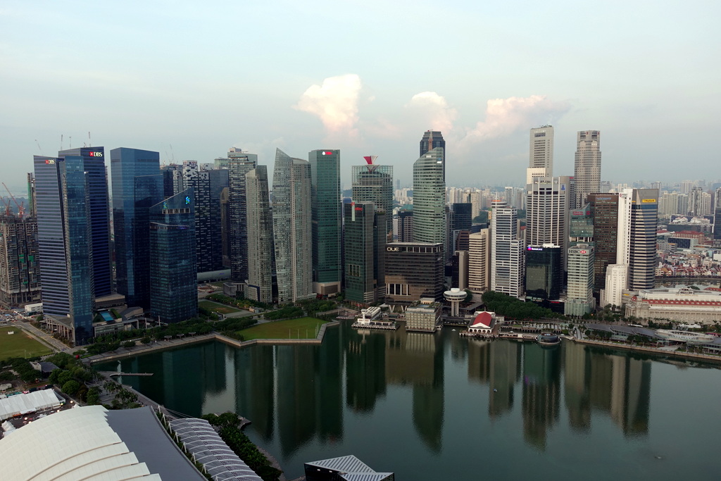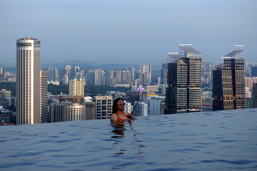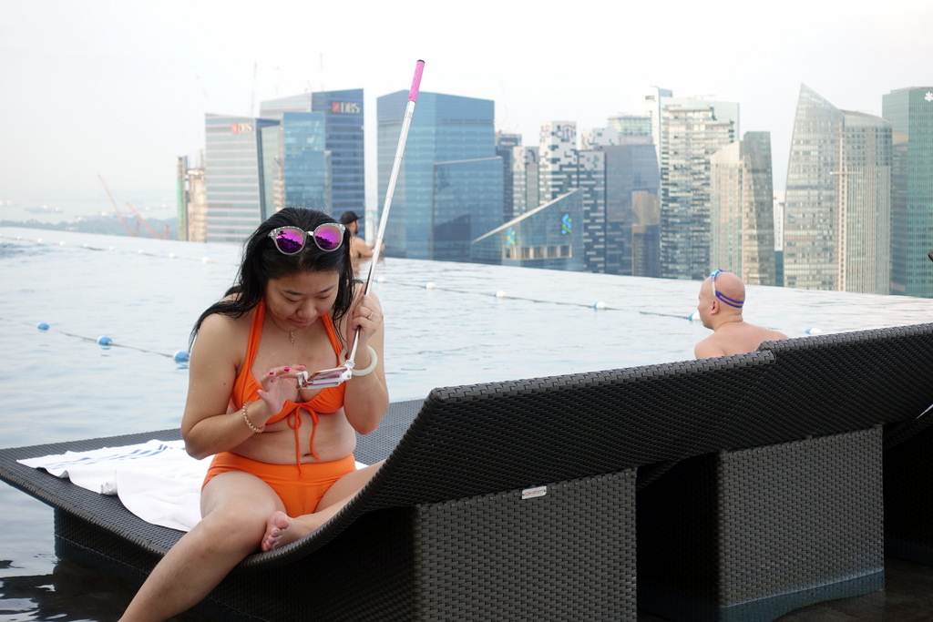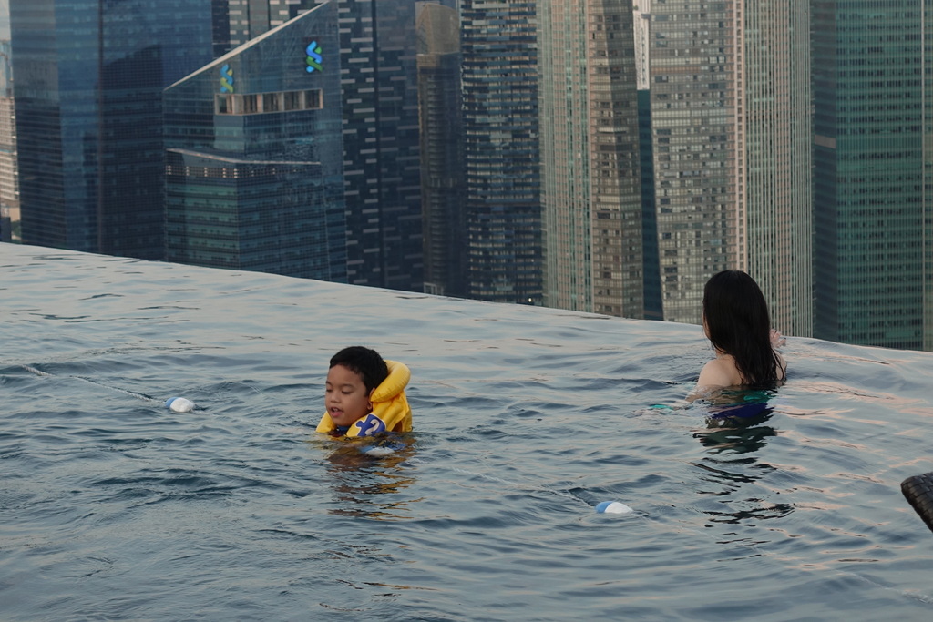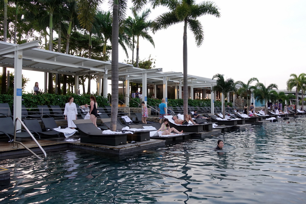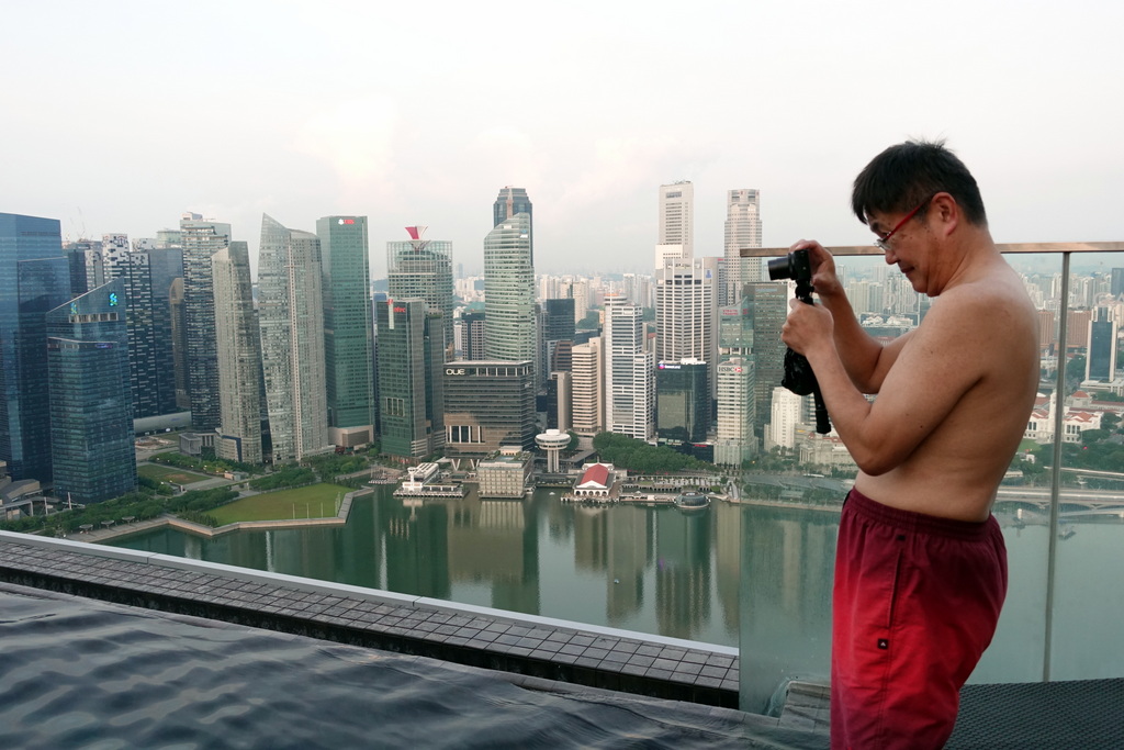 5. Вид с бортика бассейна конечно очень сильно впечатляет. Под вами открывается весь залив Marina Bay (не будем забывать, что он искусственный), и небоскрёбы даунтауна.