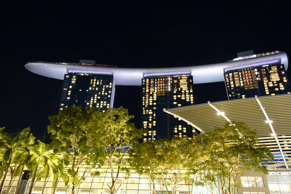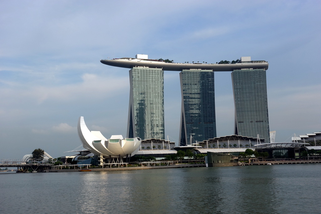 1. Отельный комплекс Marina Bay Sands пожалуй самое узнаваемое здание в сегодняшнем Сингапуре - не в последнюю очередь, потому что оно стоит в сторонке от других высоких сооружений города. Напоминающее формой римскую цифру III строение и небоскрёбом то назвать трудно, из за такого странного внешнего вида.