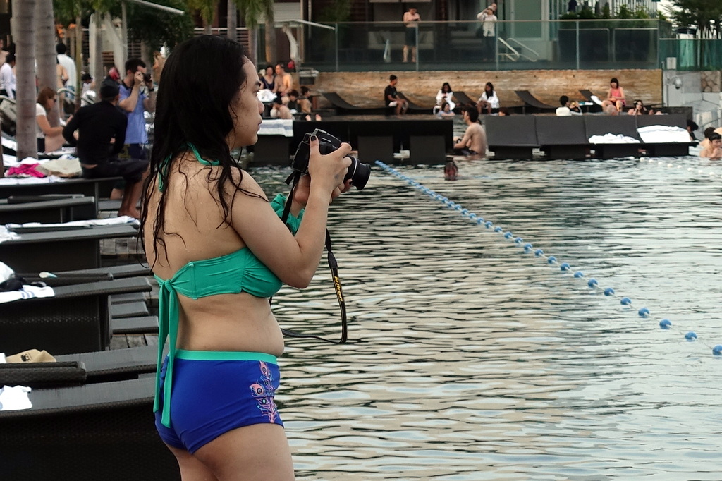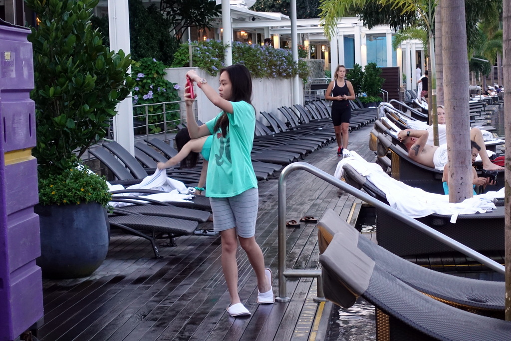 10. Но давайте вернёмся к фотографиям. Главная цель подавляющего большинства посетителей - сделать крутые фотографии. Тут я конечно же совсем не исключение. Барахтаться в хлорированной воде с толпами людей удовольствие то ещё, а вот сделать снимок "человек у края воды над городом" - это по сути то, за что мы все и заплатили так дорого.