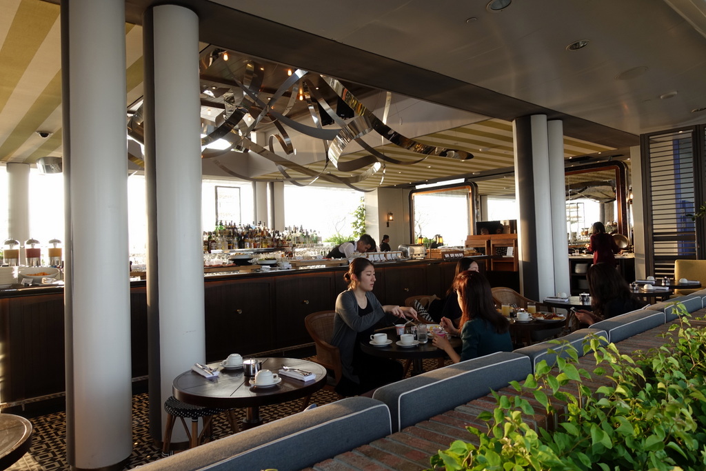 26. За шезлонгами есть более капитальный (и более дорогой) ресторан. Можно сидеть, обедать, и смотреть как люди в бассейне фигачат селфи на фоне небоскрёбов. Это конечно не вода, огонь и рабочие, но на одну трапезу развлечения хватит.