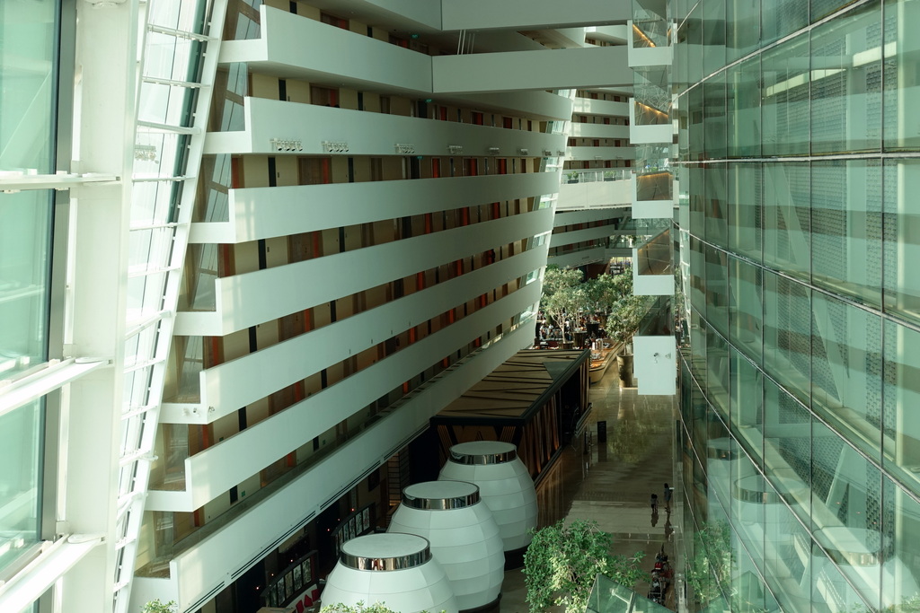 Изнутри башни Marina Bay Sands выглядят впечатляюще - первые шесть этажей комплекса - соединённый атриум. Огромное светлое современное пространство. А вот номера тут - ничего особенного. До роскоши шанхайского Хаятта, например, им далеко.