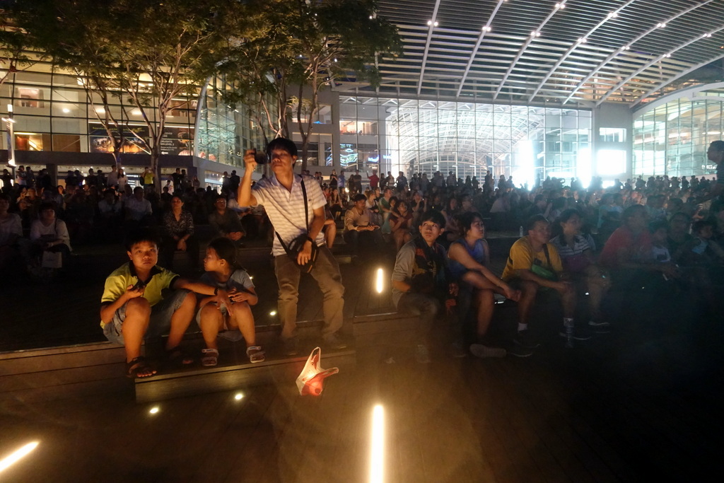 Если вы находитесь вечером в районе залива Marina Bay, то вы его всё равно никак пропустить не сможете, ведь шоу сопровождается музкой, которая гремит по всей округе. Так что займите себе местечко получше у берега залива, и давайте смотреть.