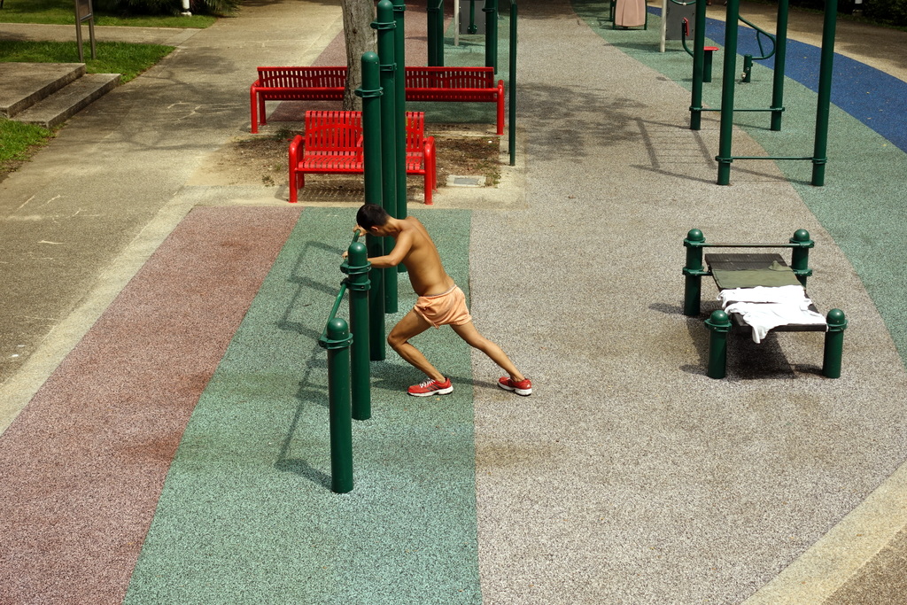 6. Рядом с жилыми домами есть спортивная площадка с различными турниками и тренажёрами. В Азии таких много. Кажется азиаты их предпочитают платным спорт-залам и различного рода качалкам.