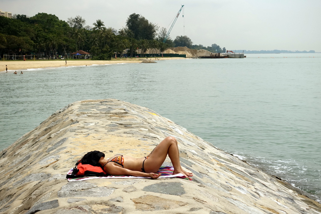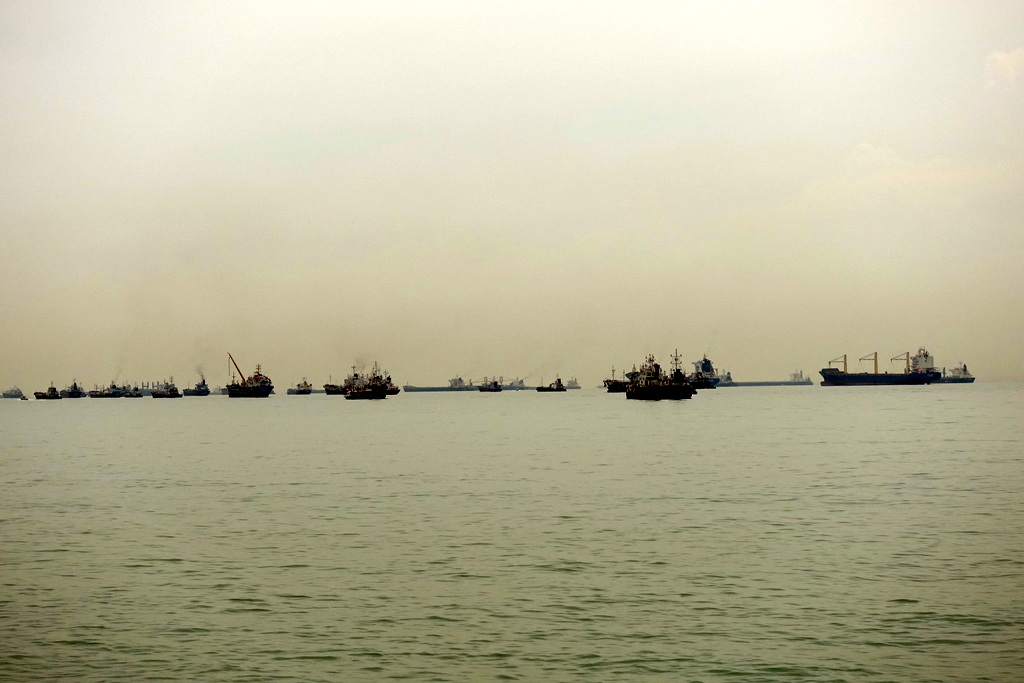 10. Один недостаток сингапурского пляжа в том, что куда ни глянь, везде до горизонта полно припаркованых сухогрузов. То ли они ждут очереди на разгрузку, то ли им просто некуда пока плыть. Но их тёмные силуэты немного портят идиллию морского берега.
