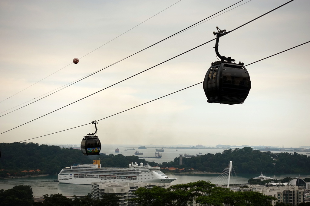 14. Канатная дорога на курортный островок Сентоза. На острове парк развлечений, пляжи, отели. Сюда же приходят огромные корабли с туристами.