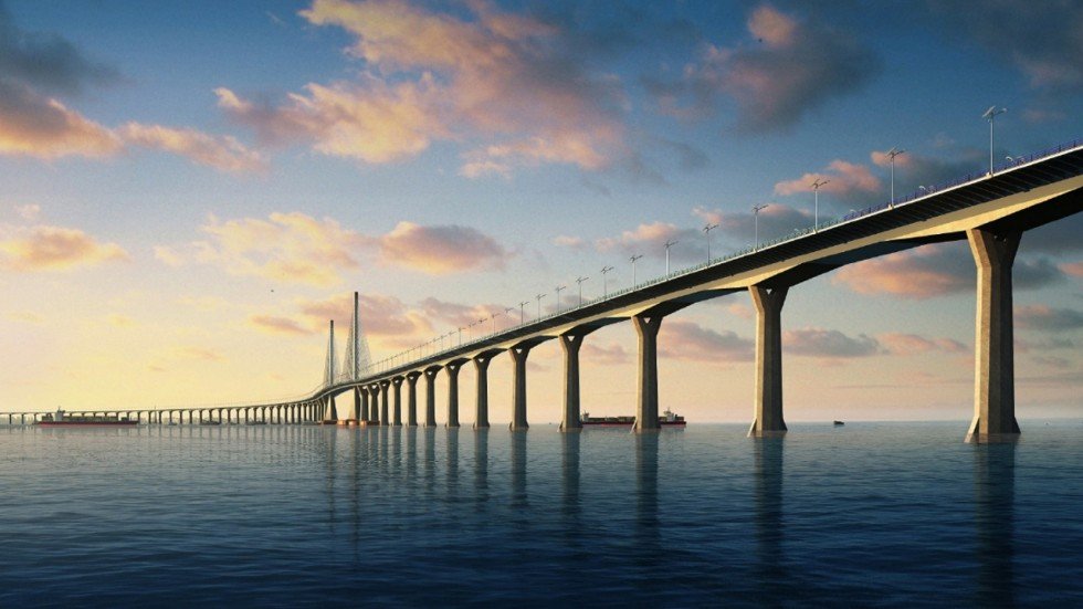 А во вторых это будет не совсем мост, а ещё немножечко туннель. Вернее, почти семь километров трассы будут идти под водой. Вот посмотрите, я сумел раздобыть