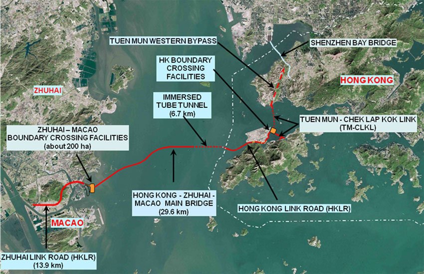 Строящаяся дорога соединит Макао и Чжухай (китайский город прямо на севере от Макао, о котором вы никогда не слышали), с аэропортом Гонконга, который находится возле острова Лантау. От аэропорта в центральный Гонконг уже ведёт существующее шоссе, к которому сейчас активно подсоединяют новую трассу. Это видно даже из окна метро!