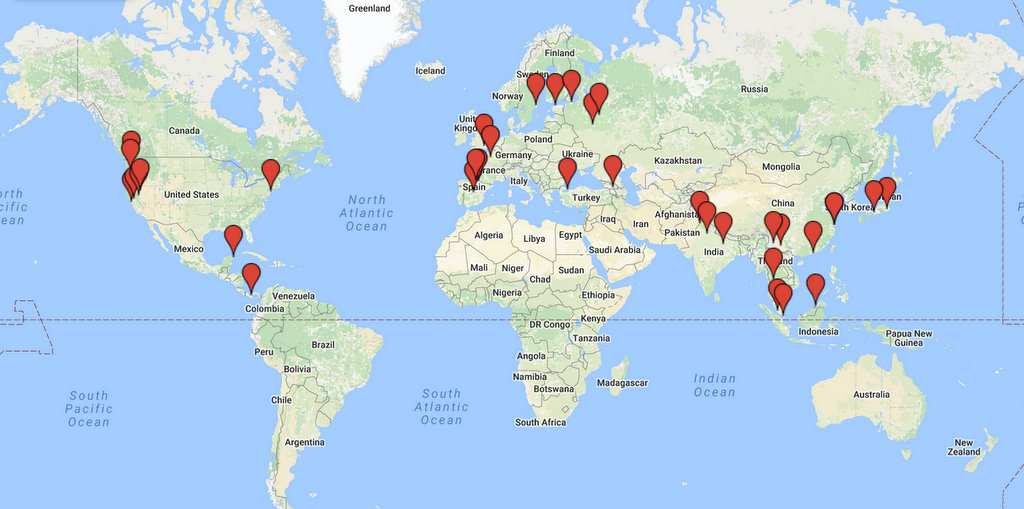 Побывал в Грузии, Турции, Англии, Индии, Франции, Гонконге, Китае, Испании, Канаде, Японии, Эстонии, Швеции, России, Мексике, Панаме, Сингапуре, Малайзии, Брунее, Макао и Тайланде. 20 стран, не считая США. Три из них (выделены жирным) для меня новые. В некотрых местах я за год успел заехать дважды: в Москву, Лондон, Гонконг и Шанхай.