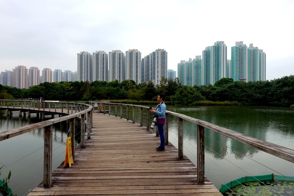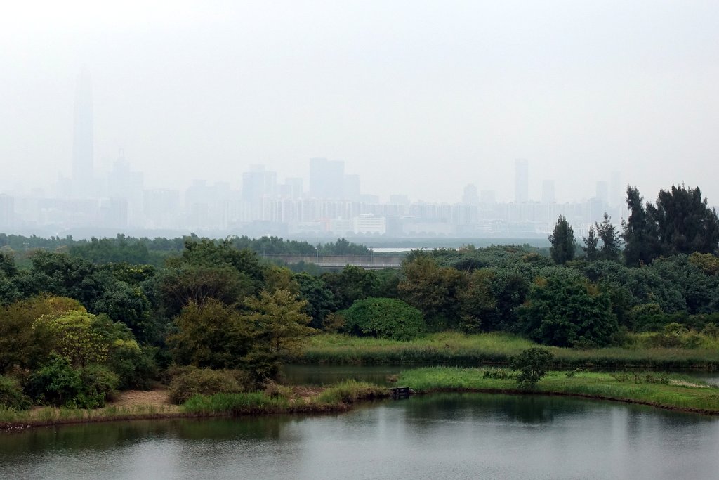 14. Парк Wetlands находится на самом севере Гонконга - в ясную погоду вдали видны небоскрёбы Шенженя. И в неясную их тоже можно разглядеть, но сложнее: