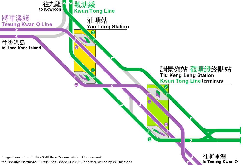 У нас в Нью Йорке есть несколько станций с подобными пересадками, но до Гонконга нам далеко.