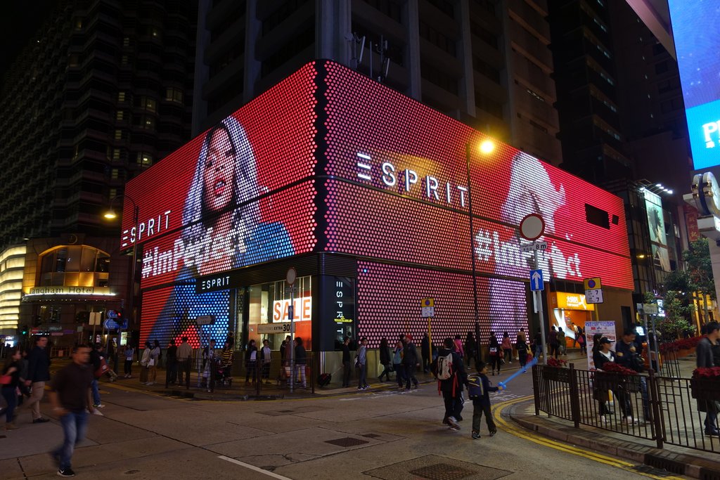 4. Из более коммерческого "искусства" очень понравился вот этот магазин Esprit, стены которого превращены в огромный дисплей с низким разрешением. Картинки на нём менялись каждые несколько секунд, вечером это выглядело очень классно.