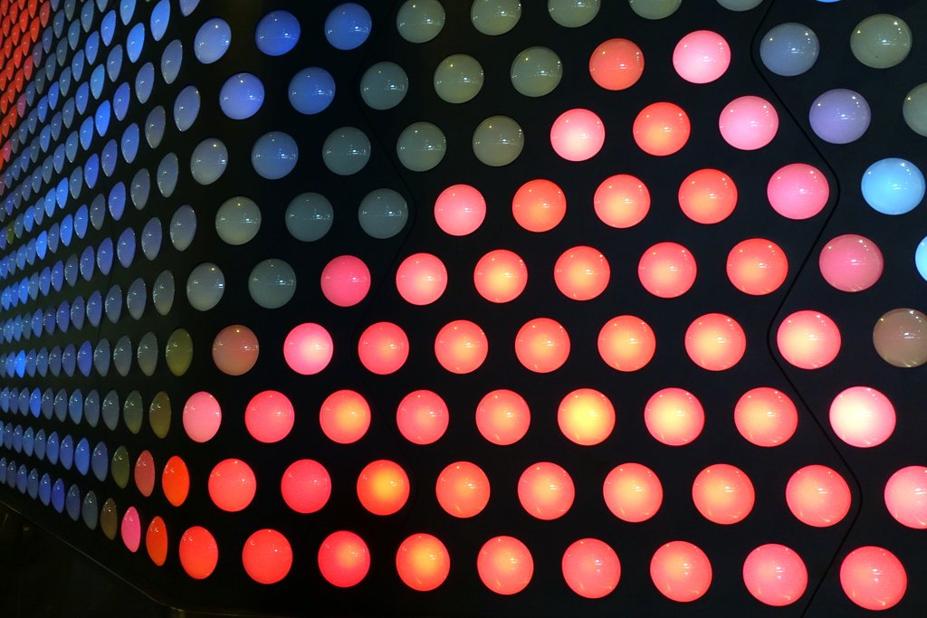 5. Вот такие лампочки-пиксели радиусом сантиметров в 20-30 покрывали всю поверхность здания. По моему отличная идея.