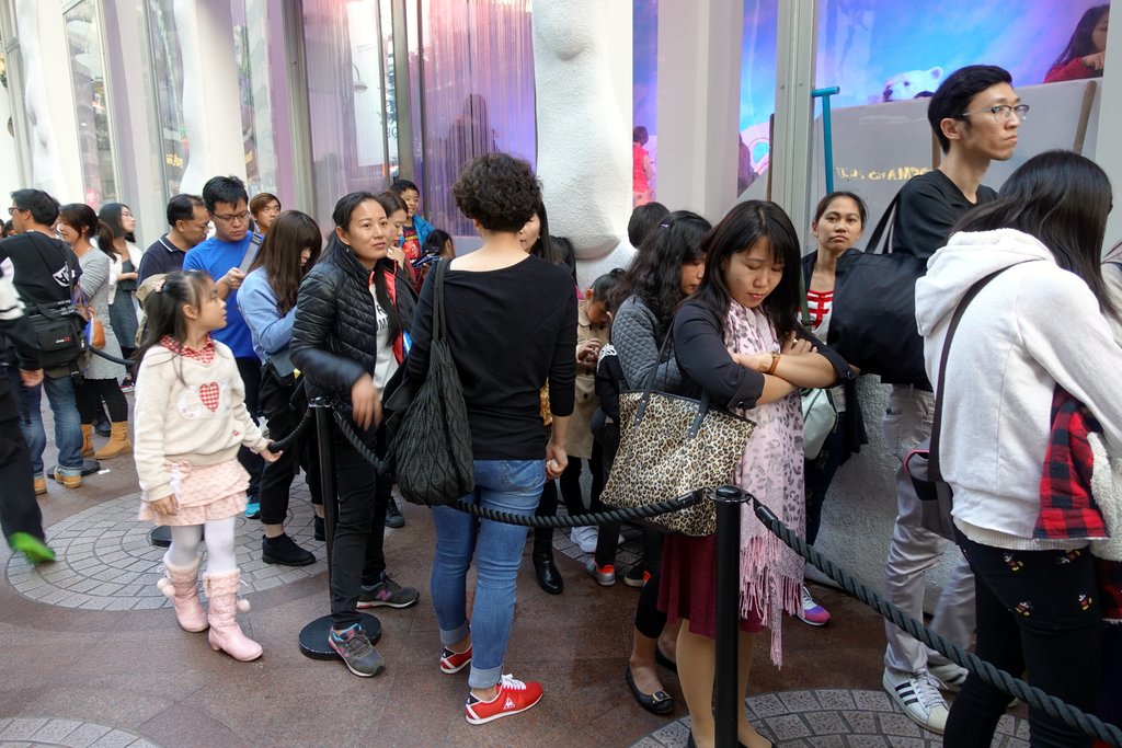 22. А потом стало ясно: это очередь за снегом. В Гонконге его не бывает, и вот к зимним праздникам, хозяева ТЦ решили порадовать посетителей, и оборудовали снежную комнату. Внутри можно походить по снегу, поиграть в снежки, и ощутить все прелести настоящей зимы. Конечно же люди выстроились!