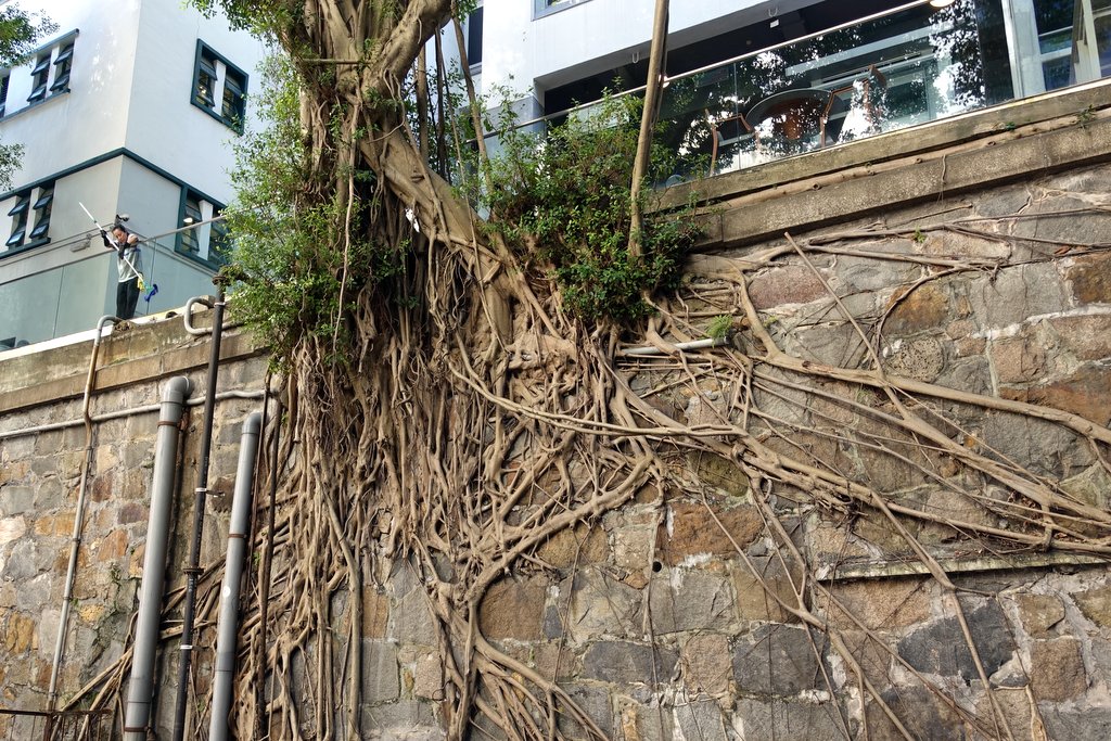 Баньяны - невероятные приспособленцы. В Гонконге они прорастают на отвесных стенах. Но такого аккуратного роста я раньше не видел.