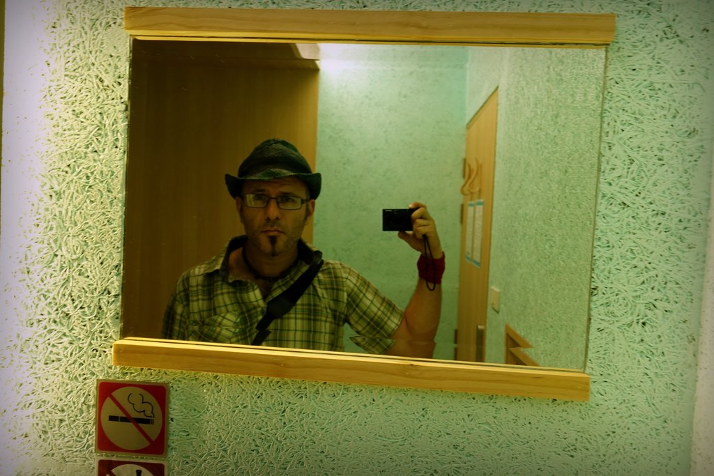 Кроме кровати и табуретки из мебели в комнате только урна и огнетушитель. А из развлекаловки, вайфай и зеркало. Самое время для селфи.