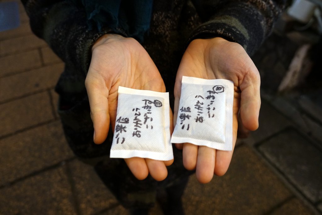 Когда мы доели и рапслатились, мэнеджер забегаловки в знак благодарности дал Тоне две вот такие штуки:
