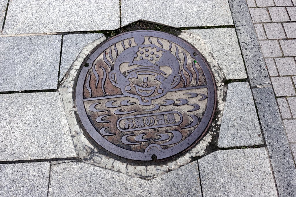 6. Даже самые маленькие городки Японии имеют свой собственный дизайн люков. Сибу Онсен не исключение. Понимаете, что тут на люке нарисовано? Это обезьянка, принимающая горячую ванну! Деревушка находится около парка Дзигокудани, известного тем, что здесь водятся японские макаки, которые любят принимать зимой ванны в горячих источниках!